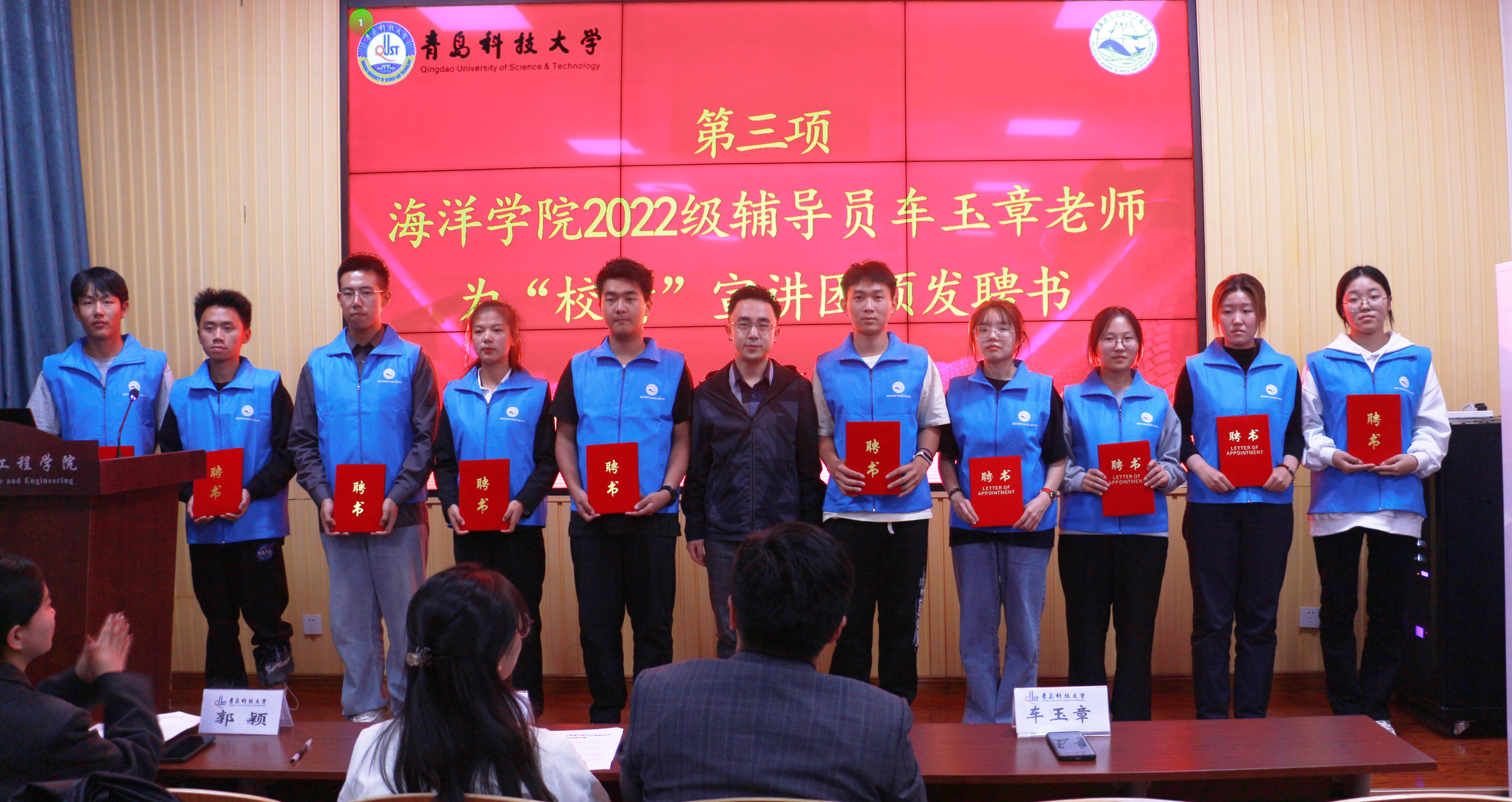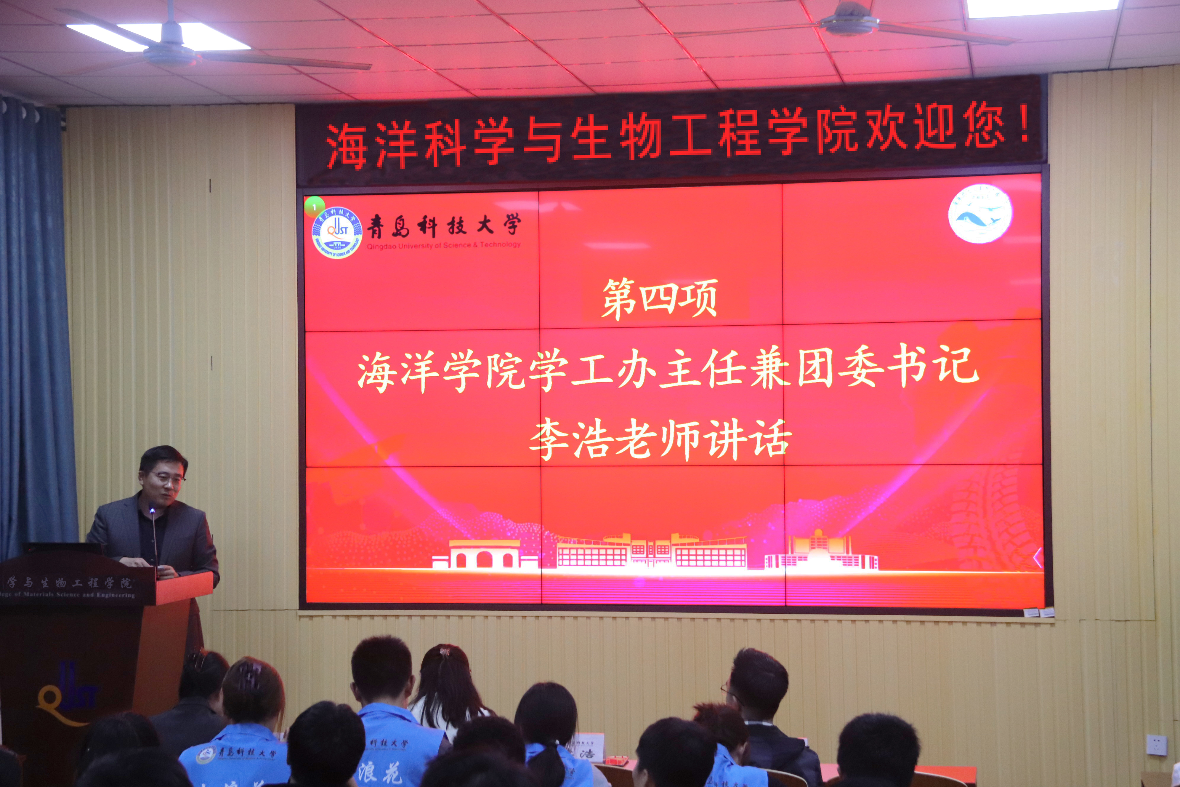 为厚植爱国爱党情怀,接续爱校荣校传统,引导学生以实际行动发扬科大精神,践行橡胶品格,贯彻五有理念,有效助力学校本科教育教学评估工作,为建设“特色鲜明、走在前列”的高水平大学贡献力量,11月3日,海洋学院团委在第二实验楼开展“知校、爱校、荣校”主题团日活动。海洋学院团委书记李浩、团委委员吕珊珊、车玉章、郭颖出席本次仪式,海洋学院2023级团员青年、2022级班长团支书和学生会成员参加启动仪式,仪式由郭颖主持。