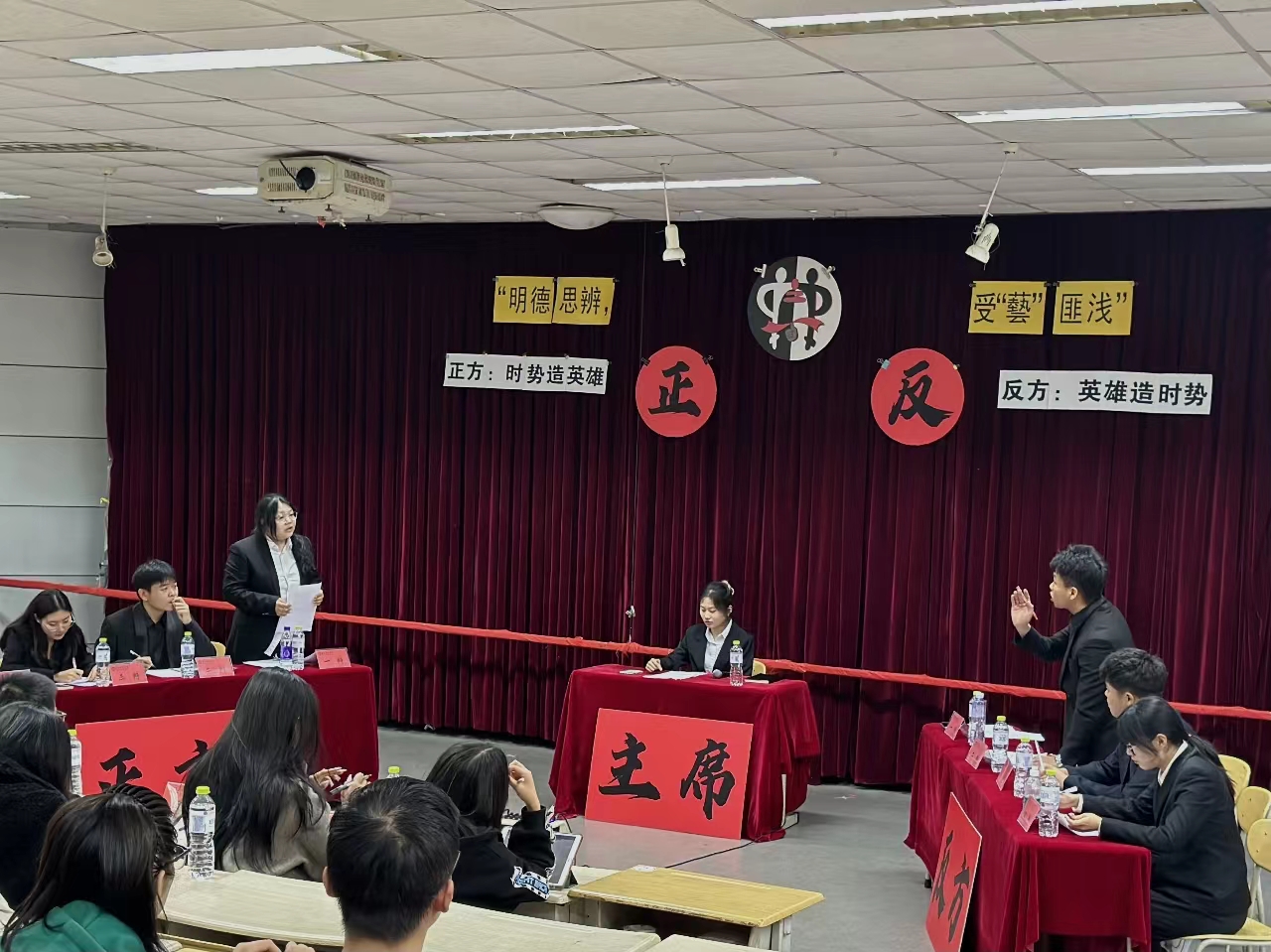 经过初赛、复赛选拔,音表231与视传231两支队伍成功进入决赛。正方音表231,辩论主题为:时势造英雄;反方视传231,辩论主题为:英雄造时势。辩手们从社会历史、时代发展、从古至今、多角度、深层次、全方位进行思维碰撞和逻辑攻守。正方认为,特定的历史条件,如社会动荡,使人的聪明才智显露出来,并相互作用,使之成为英雄人物;反方认为,英雄人物通过自身的才能、勇气和领导力来改变和影响时代。双方你来我往,在言语交锋中寻找对方破绽,辩手们举一反三、金句频出、在学中辩、在辩中学,将赛点推向高潮。双方现场表现赢得观众喝彩。最后,正方音表231代表队获得辩论决赛冠军,正方三辩辩手徐艺涵获得最佳辩手称号。