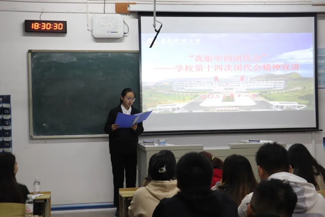 团代表及研支团成员组成宣讲团,围绕研支团的榜样引领作用、牢记使命勇担当、铸牢中华民族共同体意识等主题开展宣讲,以同学们喜闻乐见的语言和方式分享了自身经历及参与团代会的心得体会,从多个维度展示了新时代中国青年的使命与担当,引导同学们坚定理想信念,练就过硬本领,发扬斗争精神,争做有为青年,在全面建设社会主义现代化国家的新征程中凝聚起磅礴的青春力量。