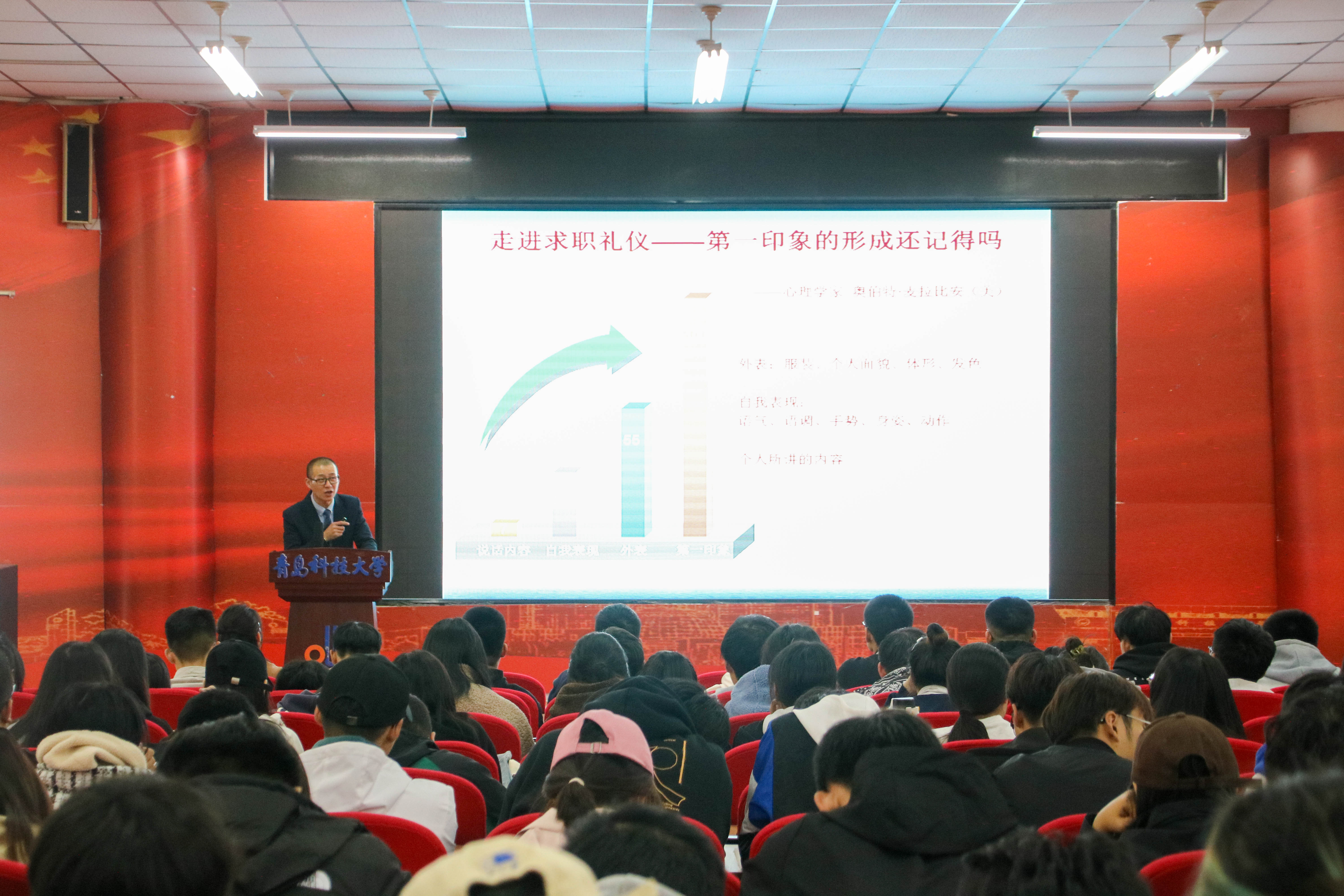11月7日下午,高密校区“新常态、新形象、新改变“求职礼仪专题讲座在通德会堂201举行。本次活动邀请了传媒学院杨洋老师担任主讲嘉宾,校区300名青年学生人参加了本次活动。