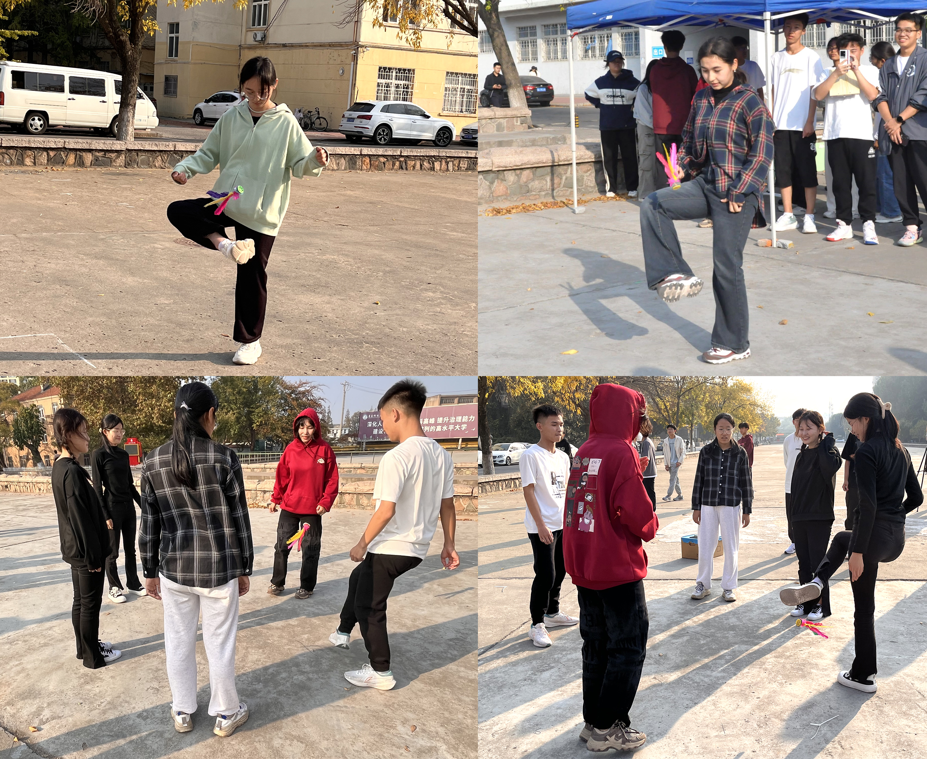 为丰富学生校园文化生活,展现化工学生青春风采,10月31日,化工学院面向23级全体学生,于小五四广场举办了第二届“足尖点燃激情,青春活力似‘毽’”踢毽子比赛。