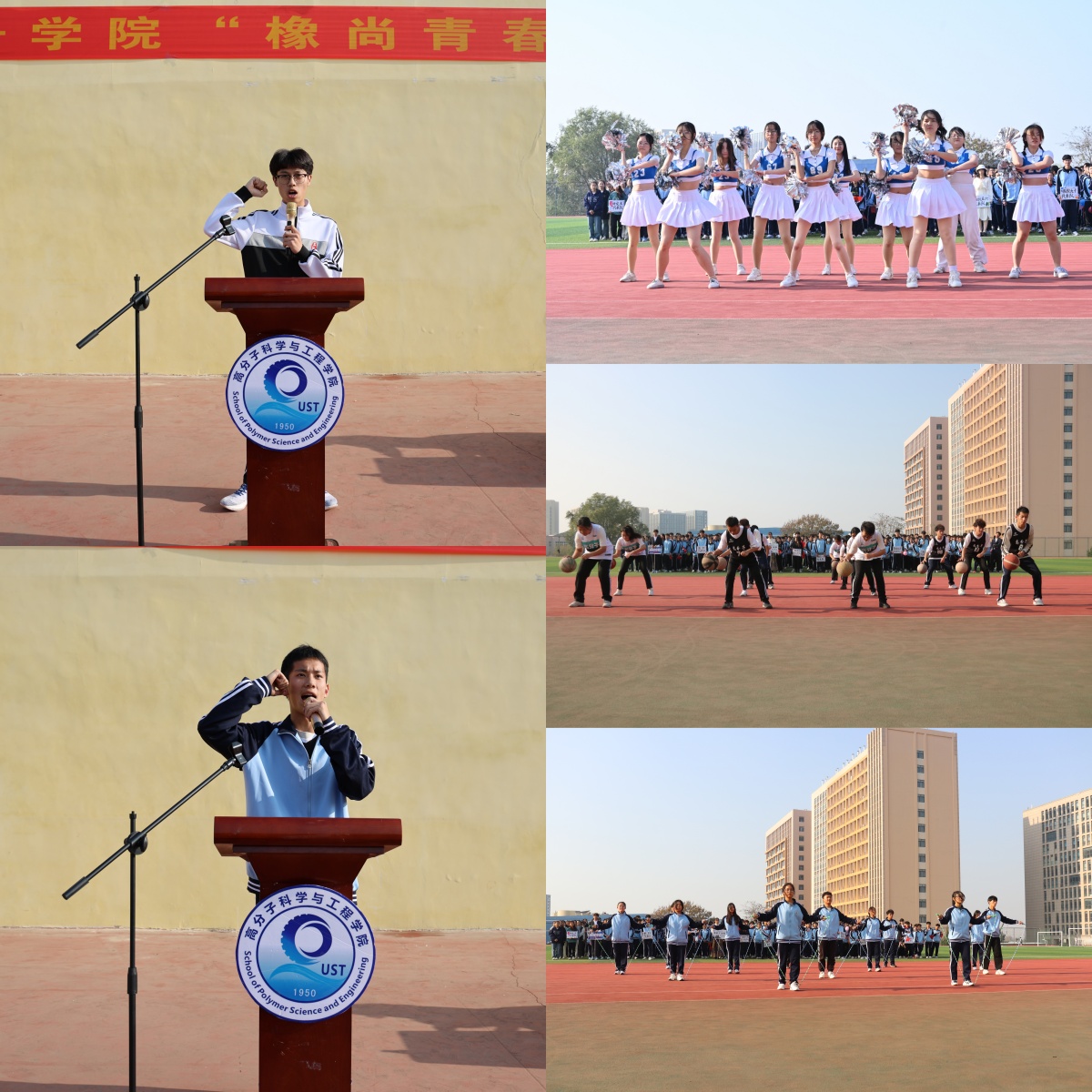 11月21日下午和11月25日上午,高分子学院“橡尚青春·热练科大”第六届秋季师生运动会暨体育联盟表彰大会在东山体育场成功举办。高分子学院党委书记孙洪广、党委副书记兼副院长尤亭亭、副处级组织员傅进、副院长杜爱华、副院长王庆富、橡塑重点实验室副主任兼工会主席刘伟、田径队指导教师马力以及团委辅导员出席本次大会,教工代表队、老生代表队及2023级全体新生参加本次大会。大会仪式由王卉卉主持。