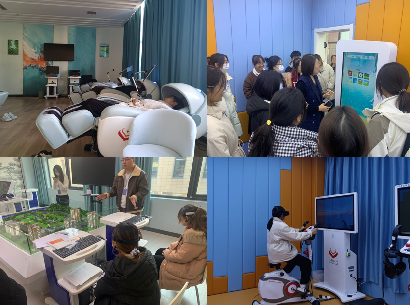 团队首先到达崂山区社会心理健康指导中心进行参观。在中心老师带领下团队逐项体验了量表测评系统,中心负责老师向大家介绍崂山区社会心理健康指导中心情况,并带领团成员参观个体咨询室、团体辅导室、减压放松室、宣泄室等场地,并介绍智能身心评估减压放松训练系统、3D心理沙盘系统、VR心理放松训练系统、脑波火车等专业设备。随后团队成员分组分别体验松训练系统、脑波火车、VR心理放松训练系统,大家感受科技为心理放松带来的全新体验,学会科学的心理减压方式。同时中心为各位心理骨干开展心理健康知识培训与宣讲。
