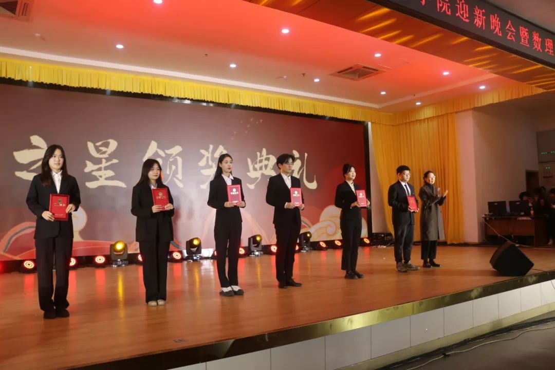 在数理文化节优秀学生成果表彰环节,李淑贞、杨树国分别为12位获得“π之星”荣誉称号的优秀学生颁奖;郭广海为获得国家奖学金、山东省优秀学生等省级以上荣誉的优秀学生颁奖;张瑞坤、高鹏分别为全国大学生数学建模、山东省物理竞赛等学科竞赛获奖学生颁奖。