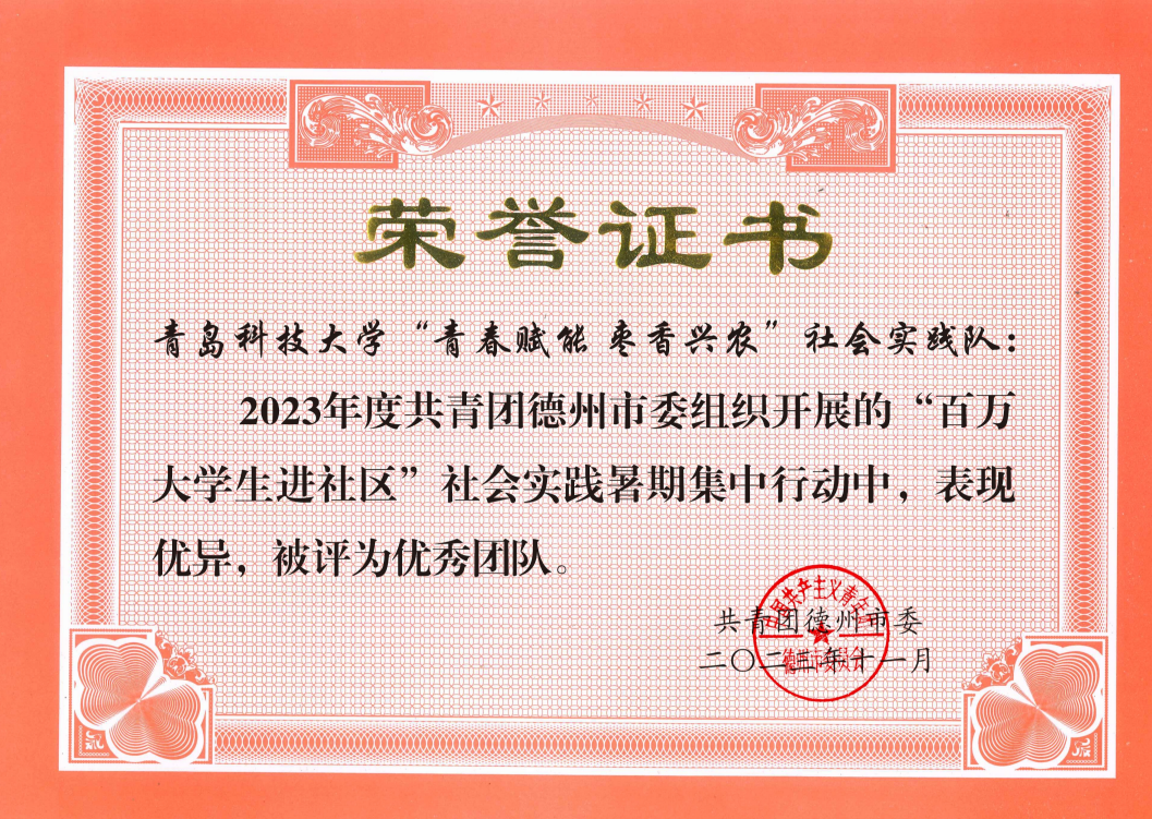 近日,2023年度共青团德州市委“百万大学生进社区”社会实践暑期集中行动优秀团队名单公布,AC米兰中国官网经管学院“青春赋能 枣香兴农”社会实践队位列其中。