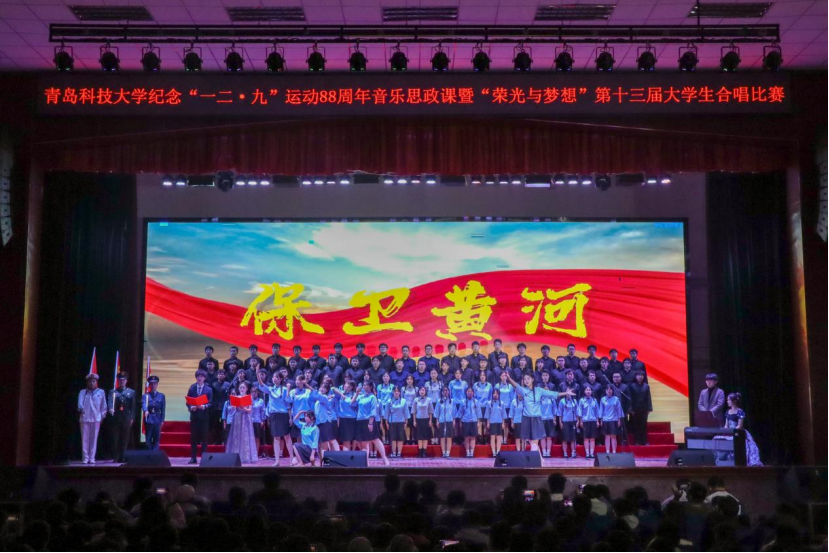 此次合唱比赛不仅是一场丰富多彩的文化艺术盛宴,也是一堂生动的音乐思政课。回首遥望“一二九”运动,青年学生的拳拳报国之声仍令人热泪盈眶,每每听到红色旋律,依旧对扣人心弦的旋律感到神往。学院将《黄河大合唱》中最鼓舞人心的第七乐章《保卫黄河》作为演出曲目,以短促跃动的曲调、铿锵有力的节奏,全景描绘了抗日军民英勇战斗的壮丽场景,表达了战胜敌人、夺取胜利的激情,展现出必胜的乐观主义情怀。机电青年在乐声中感悟先辈精神,在训练中磨砺奋进品格,发扬“一二九”革命抗争精神,努力成长为堪当民族复兴大任的时代新人,为实现中华民族的伟大复兴贡献青春力量!