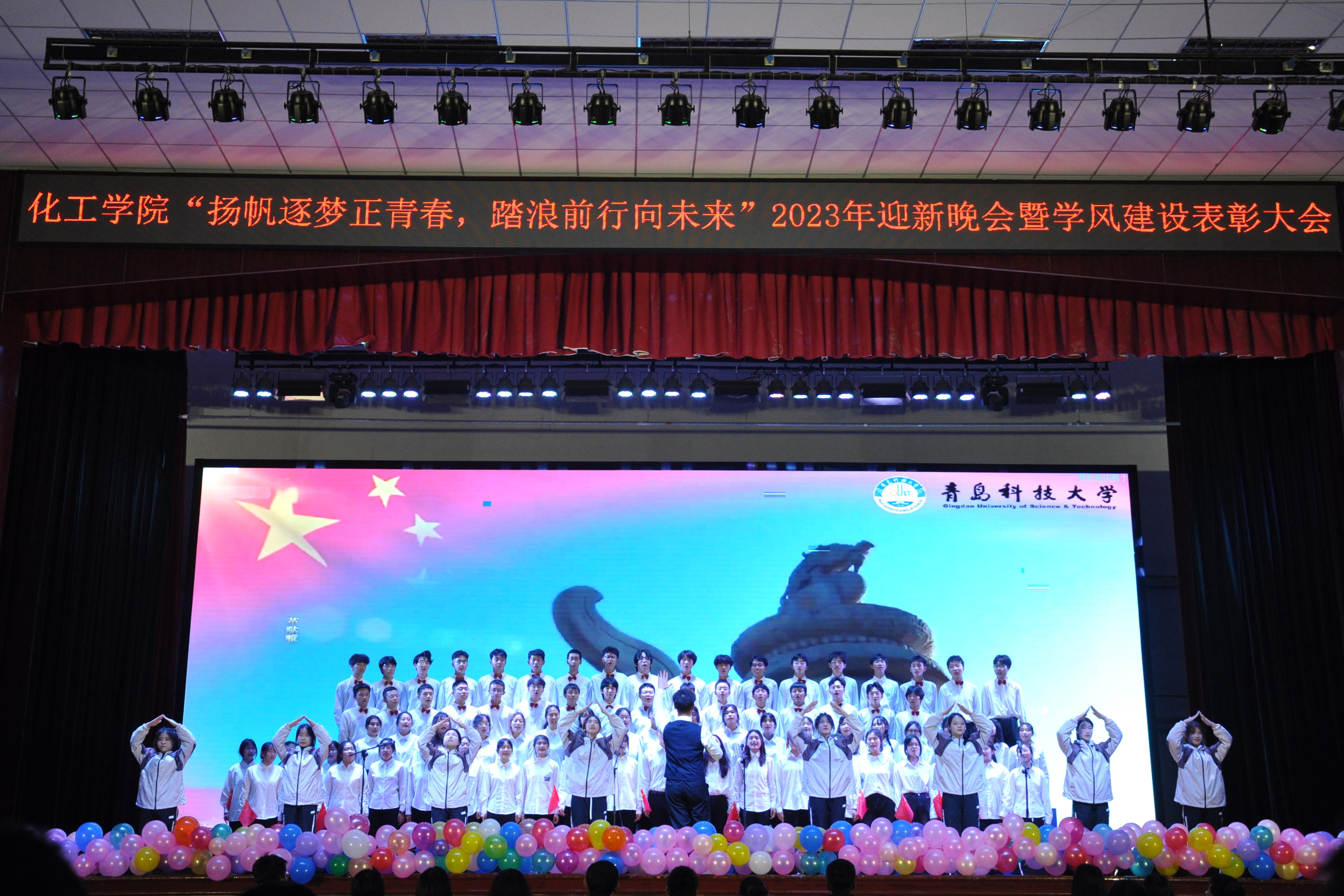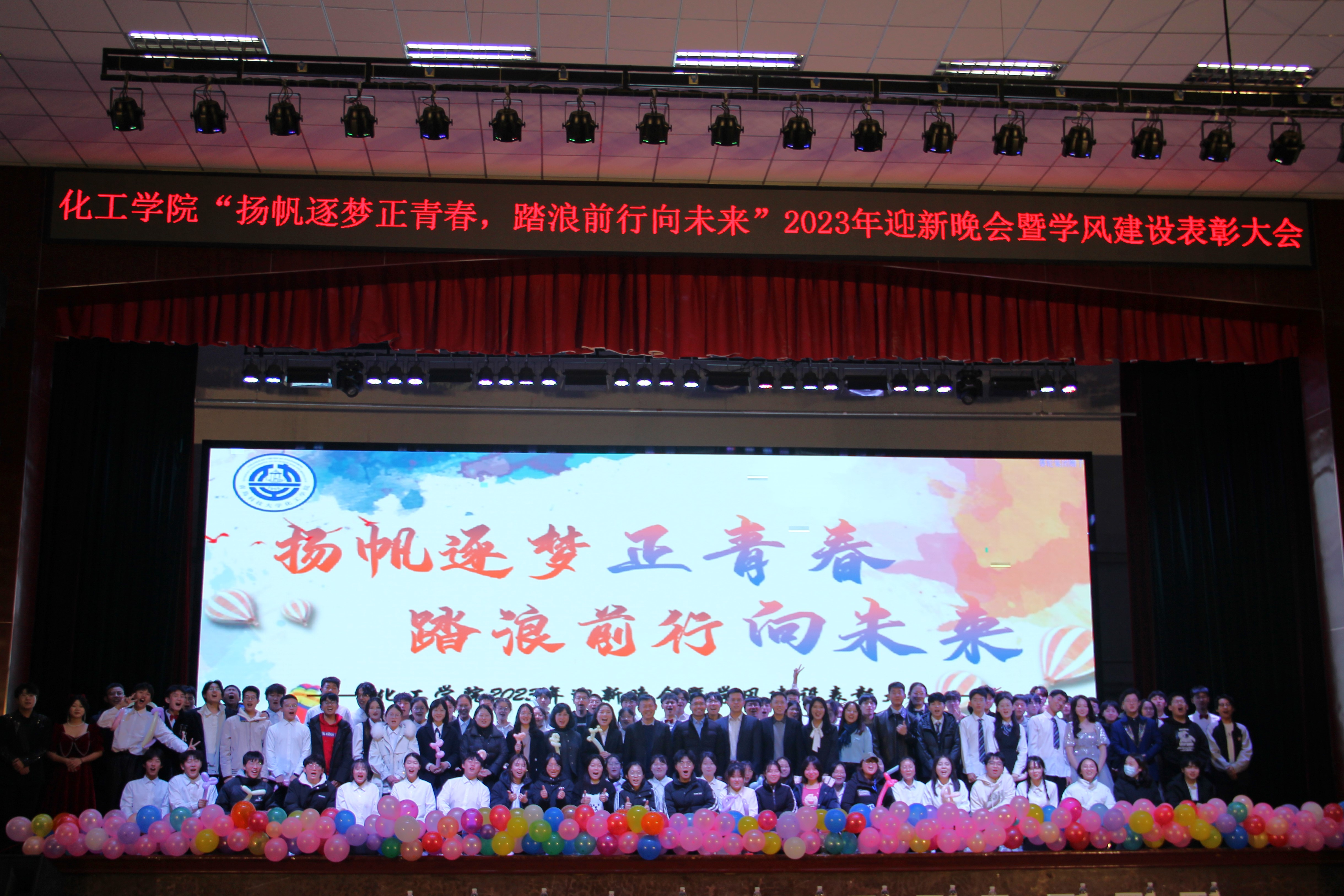 12月14晚,化工学院"扬帆逐梦正青春,踏浪前行向未来"2023年迎新晚会暨学风建设表彰大会在四方校区西礼堂举办。学院党政领导、班主任、辅导员和23级新生齐聚一堂,共同观看晚会。晚会线上线下同步直播。