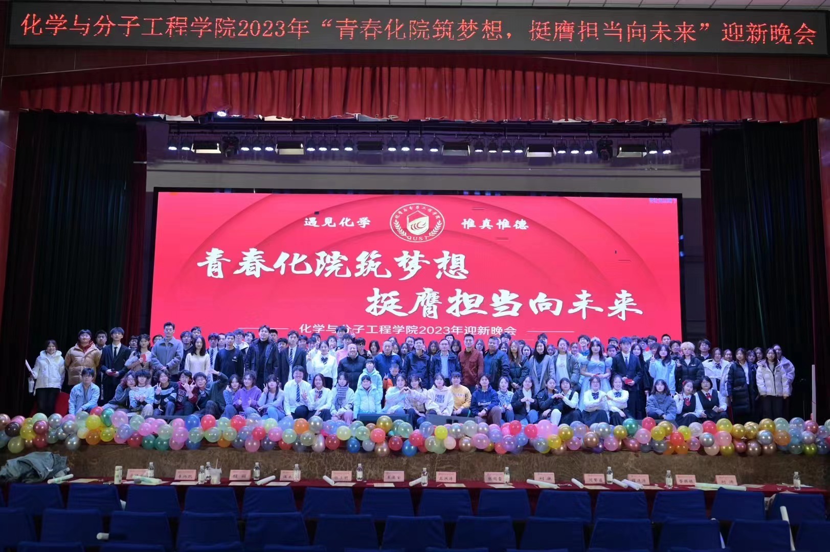 12月12日晚,化学院“青春化院筑梦想,挺膺担当向未来”2023级迎新晚会在四方校区西礼堂举行。学院党委书记王德宝、副院长高洪涛、副处级组织员张同雷、学院党委副书记兼副院长杨小明,以及化学院全体专兼职辅导员出席本次晚会。
