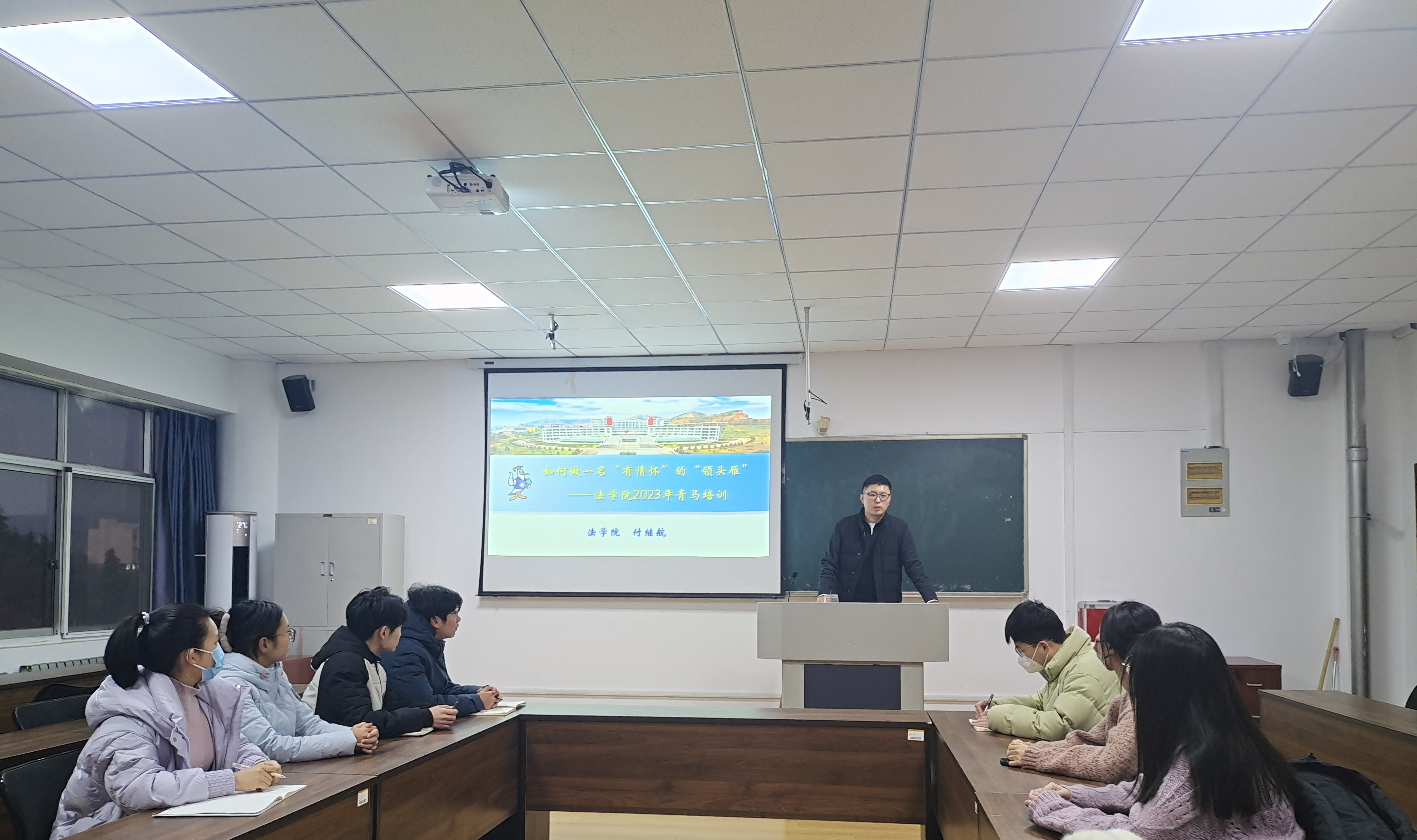 付继航详细介绍了法学院2023年秋季学期“青马工程”培训班的实施方案,强调培训的考核方式和纪律要求,鼓励学员们充分“青马工程”这一交流研讨的平台,在理论学习和培训实践中进一步增强服务本领,用心感悟、学有所获。随后,他为青年学生骨干做了题为《如何做一名“有情怀”的“领头雁”》的专题培训。他勉励青年学生干部要坚定理想信念,加强实践锻炼,坚持品学正风,在学习生活中强化服务意识,发挥模范带头作用,挺膺担当,把青春奋斗融入党和人民事业。