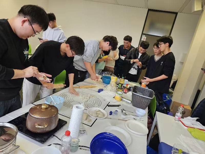 交流学习期间,正值中国甲辰龙年春节之际,同学们热情邀请德方师生一起包饺子,向德国师生介绍了中国春节喜庆祥和、和合美满的文化内核,并互致新春问候。对于参加此次交流活动的19名同学而言,虽然这是一个没有家人陪伴的春节,但意义非凡,他们都为有机会亲自向德国师生讲述中国“以和为贵、协和万邦”的“和文化”感到骄傲和自豪,正因如此,更觉弥足珍贵。