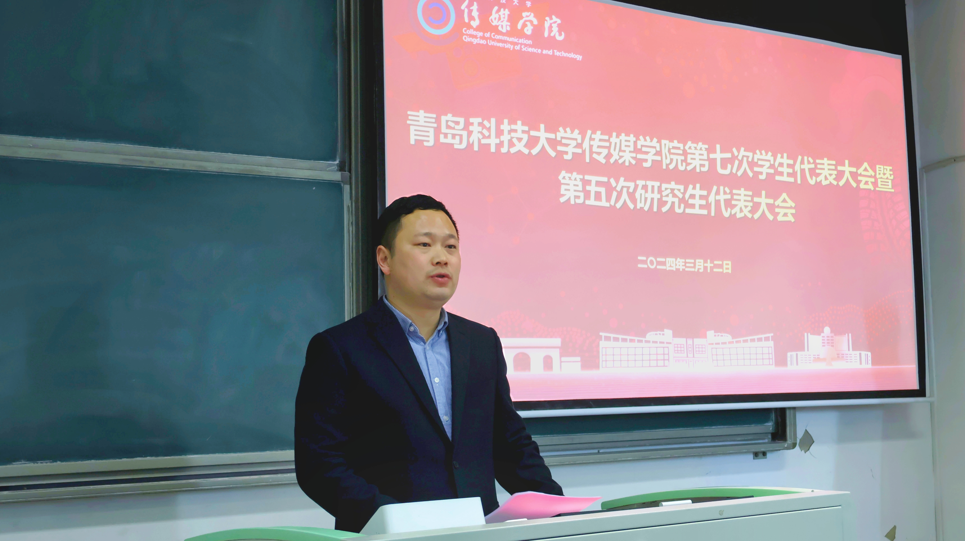 3月12日下午,传媒学院第七次学生代表大会、第五次研究生代表大会在弘毅楼E区203室召开。学院党委副书记兼副院长刘海波,学工办主任兼团委书记于杰亮及团委全体老师,校学生会代表高中天,体育学院学生会代表孙梓浩,外国语学院学生会代表王鹏程及传媒学院全体学生代表参加大会。