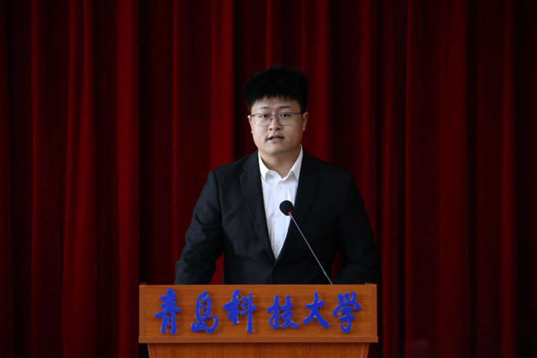校学生会代表吕庆海发言,他指出,信息学院学生委员会一直以来在各项工作及活动中起到积极的引领作用,并致力于做好学生服务工作,不断进取。希望在今后在继承和发扬学生委员会优良传统的同时继往开来,再创佳绩!