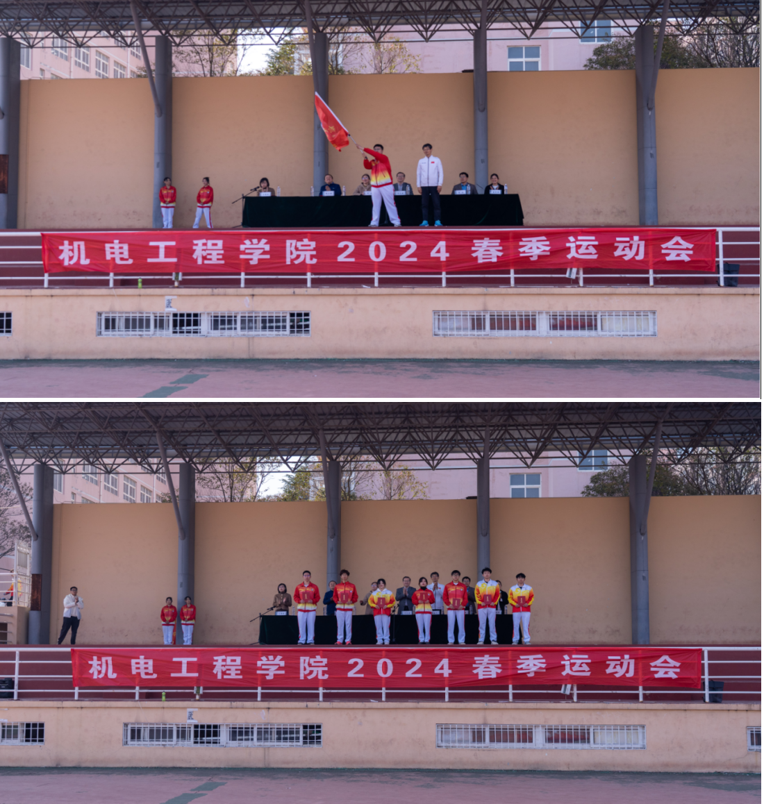 3月26日,机电工程学院2024年春季运动会暨“液体黄金”运动季启动仪式在南苑操场举行。学院党委书记任允晓、院长何燕、校体改办常务副主任楚晓东、学生工作部副部长李春家、校团委副书记李浩、学院党委副书记杨小明、学院团学干部、1000余名机电青年学生参加启动仪式。学院团委书记王娟娟主持启动仪式。