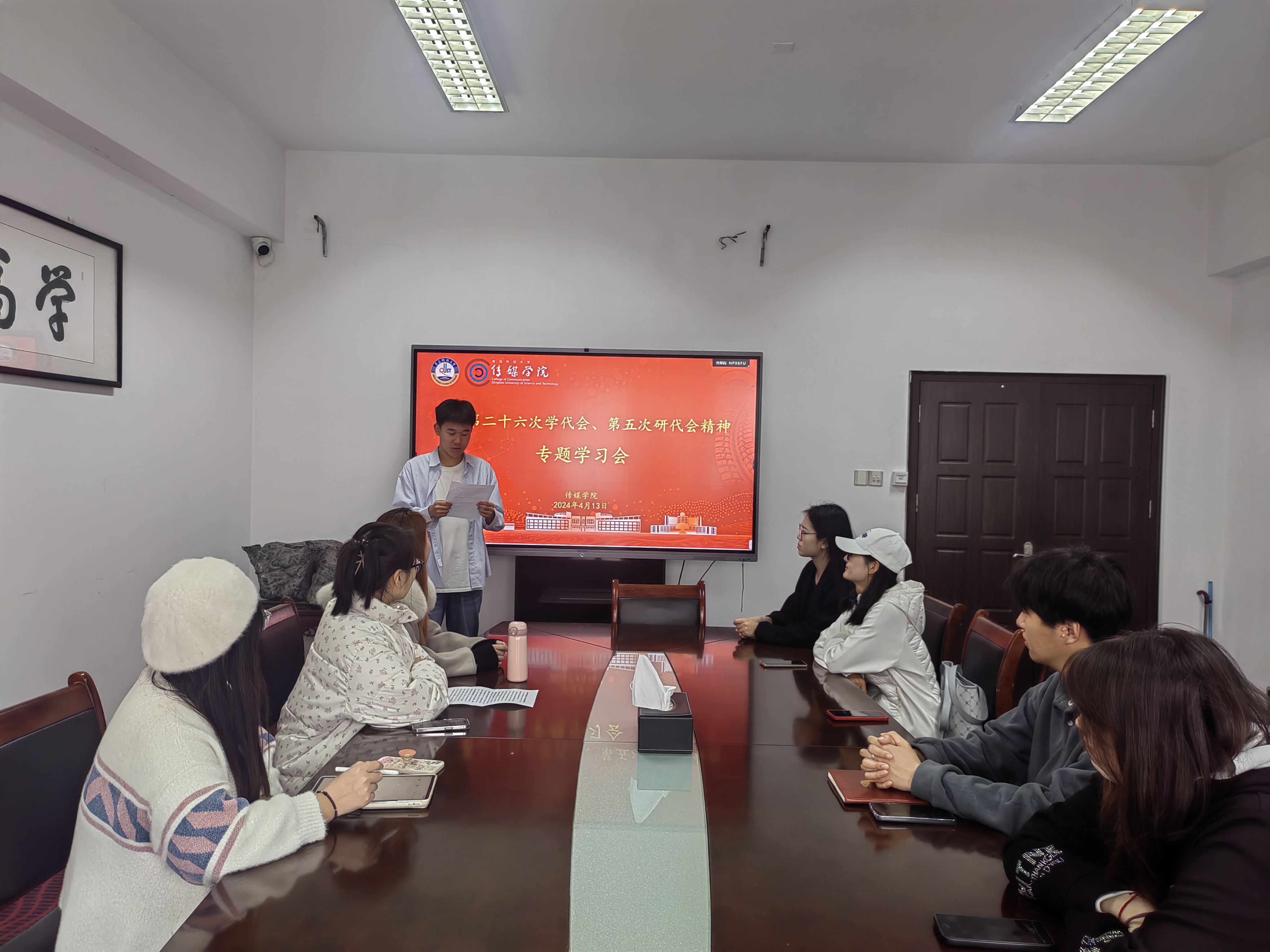 为更好贯彻落实学校第二十六次学代会、第五次研代会精神,提高学院学生组织服务师生效能,4月13日下午,传媒学院于315会议室召开学习贯彻学校第二十六次学代会、第五次研代会精神专题会议。学院学生会主席团、研究生会主席团及骨干成员参加会议。