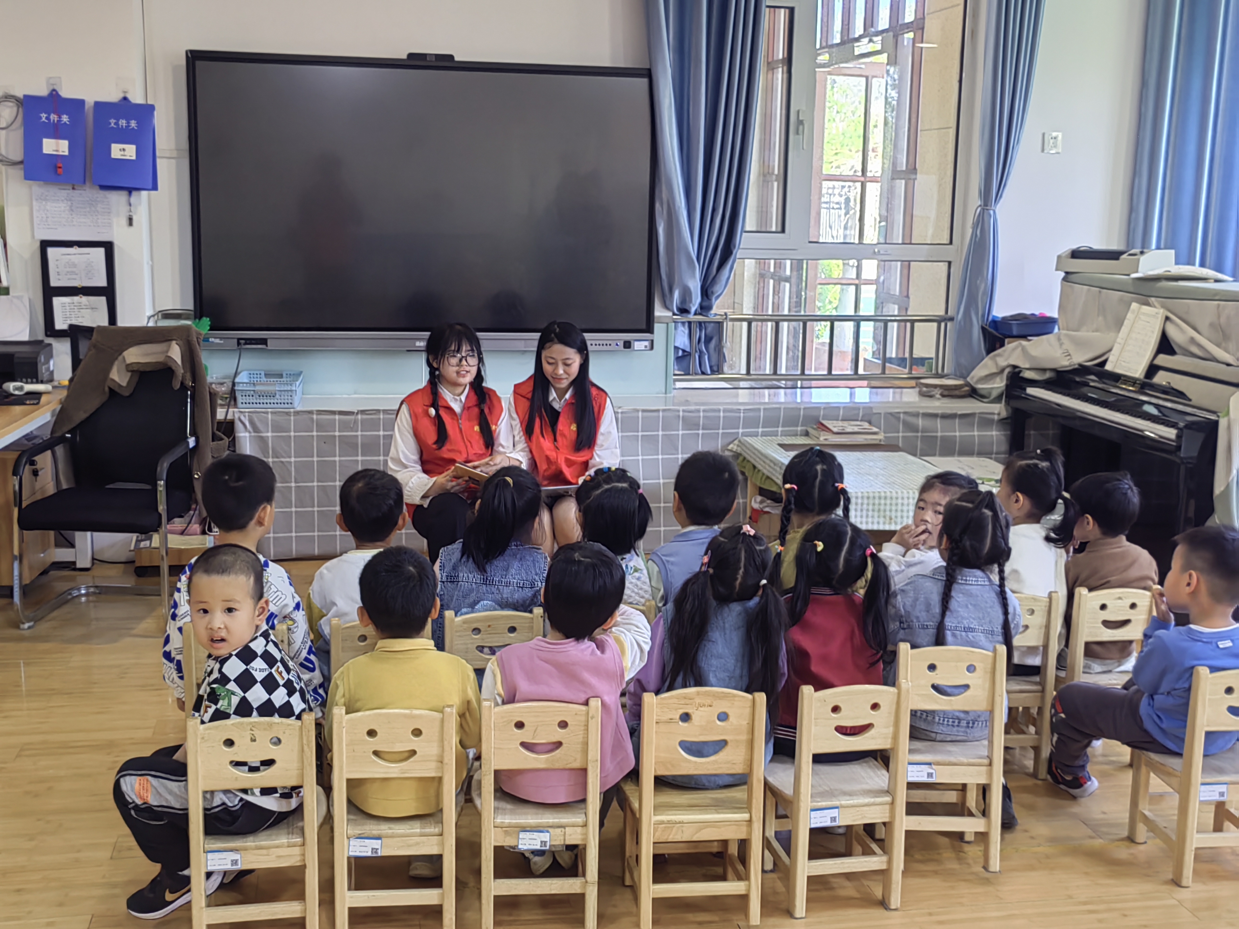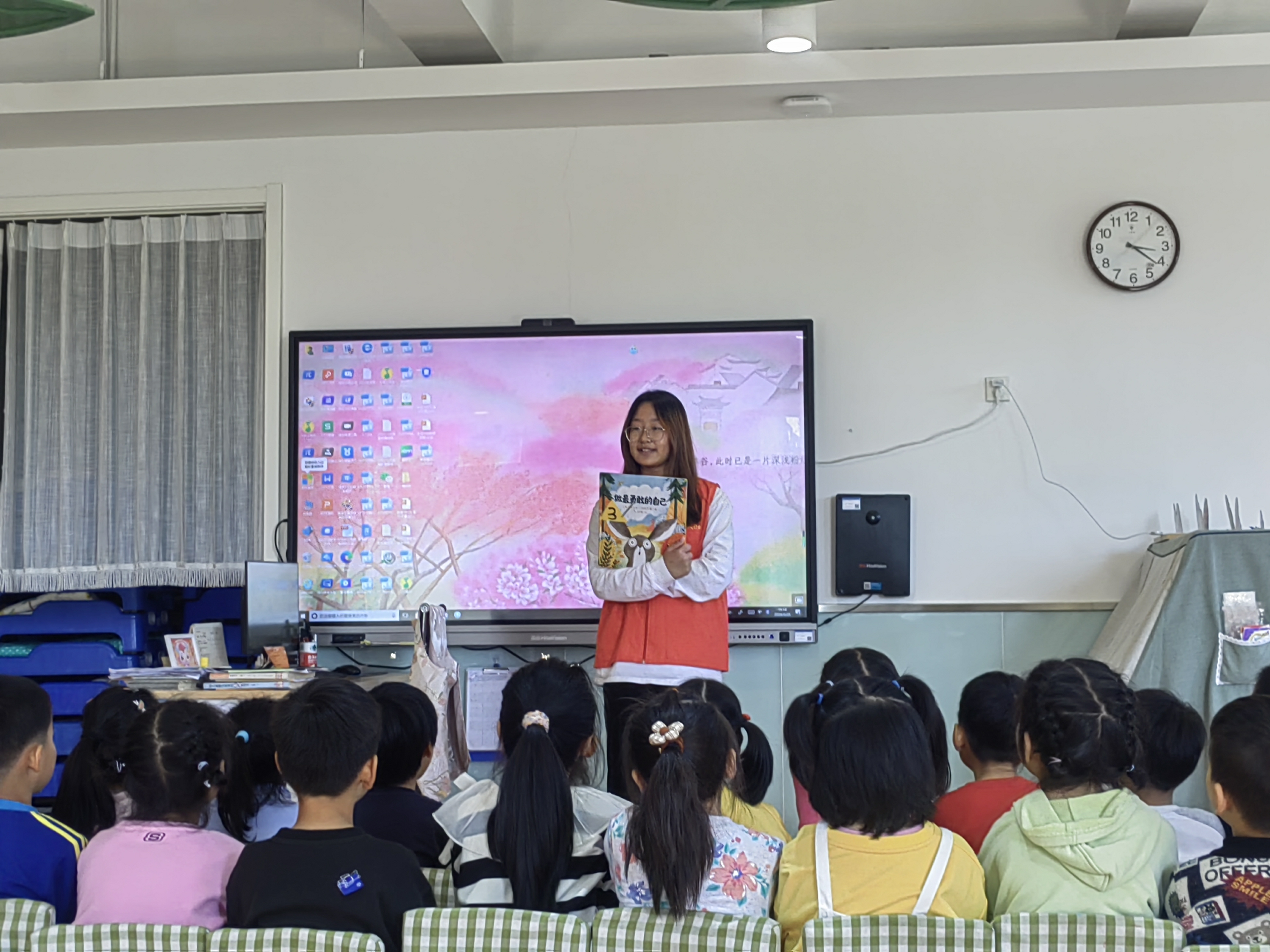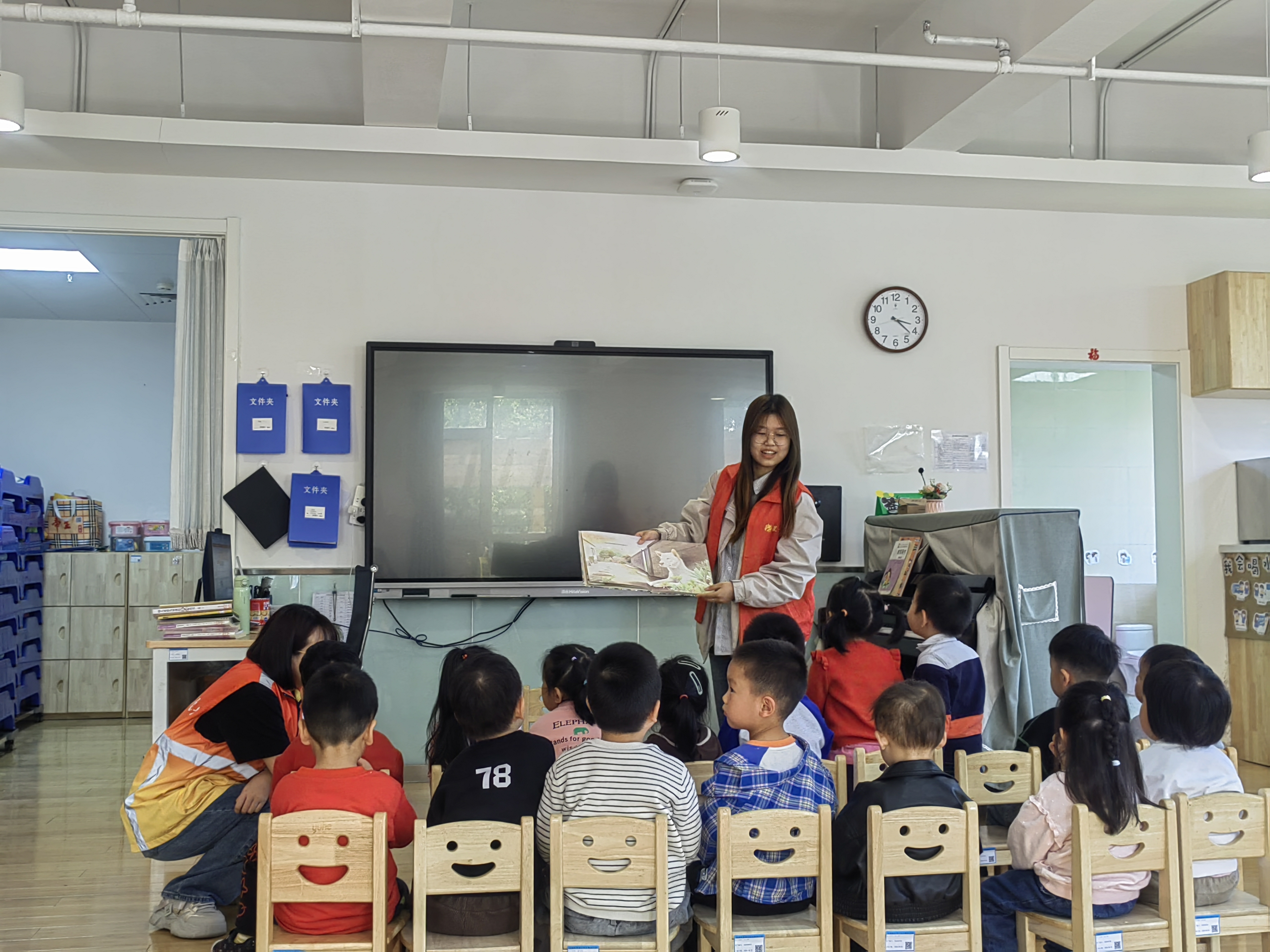 志愿者们精心准备,挑选了《透明的翅膀——一只蝴蝶的故事》《逃跑小兔》《做最勇敢的自己》《雷锋的故事》等一系列内容丰富且有趣味性的故事读本。在讲解过程中,志愿者们用生动的语言,将故事中情节重现,将角色特点介绍得栩栩如生,并积极引导孩子们去思考故事背后的深层含义。孩子们听得津津有味,不禁发出惊叹和笑声。志愿者们鼓励孩子们开动脑筋,盘点阅读的成果,思考阅读的意义,引导小朋友们敬畏文字、崇文尚读,将中华文明的精神底色融入到读书中。孩子们纷纷表示,他们不仅从故事中收获了快乐,还学到了很多知识和道理。