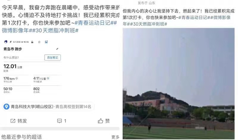 集成专业的刘欣悦同学表示:“这次的运动打卡活动,不仅督促我养成了良好的运动习惯,也让我更加重视身体健康。从‘创青春’公众号打卡,学习共青团中央推送的知识,也让我拓展了视野。”