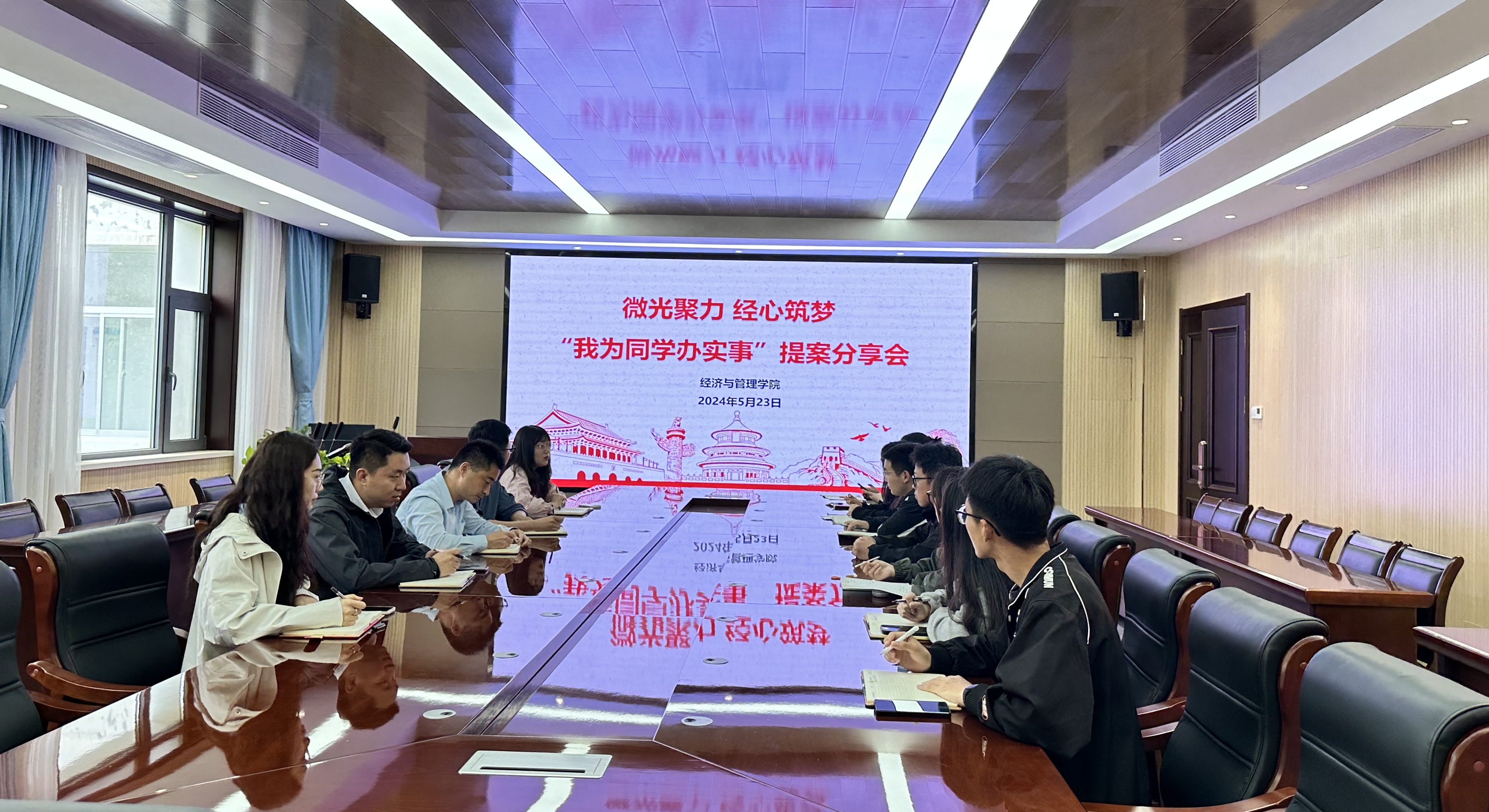 为进一步满足学生成长需求,提升青年学生自我教育、自我管理、自我服务的能力水平,5月23日,经管学院学生会在经管楼313会议室召开“微光聚力 经心筑梦:我为同学办实事”提案分享会。学院党委副书记兼副院长牛宝卫,团委书记付继航,各年级辅导员及学生会各部门负责人出席会议。