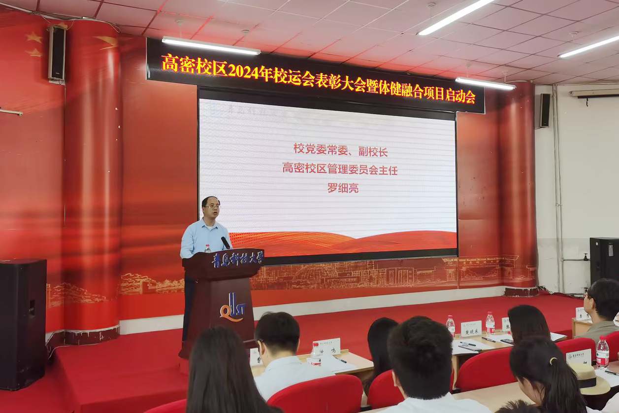为深入贯彻落实学校“以体为本、出彩人生”的体育综合育人精神,5月23日下午,高密校区2024年校运会表彰大会暨体健融合项目启动会在通德会堂201举行。学校党委常委、副校长罗细亮出席活动并讲话。校区管委会常务副主任张青山主持活动。