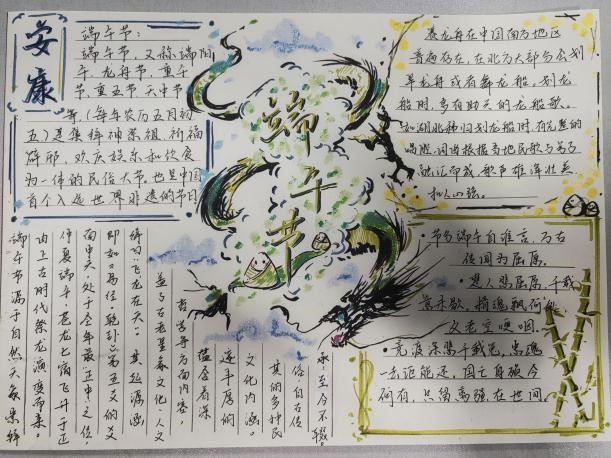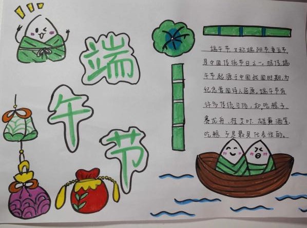 两千多年前,屈原用自己的宝贵生命谱写了一曲雄伟壮丽的爱国史诗;两千多年后的今天,同学们追溯先人故事,了解端午节的由来,学习端午节习俗,用手抄报的形式表达我们对于端午节的热爱,对于先贤的崇高敬意。