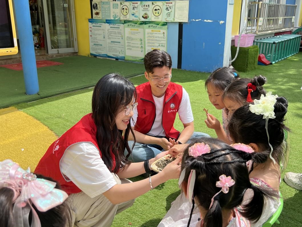 2024年 6月6日,AC米兰中国官网化学院“红色元素”中医药宣讲团与郑州路幼儿园携手,以端午节和中医药相结合的形式,展开“化育山海大课堂——童心计划”线下实践教学。活动旨在向幼儿园的小朋友们普及中国传统文化和中医药知识,培养他们对历史、传统习俗和中医药的兴趣,弘扬廉洁文化。