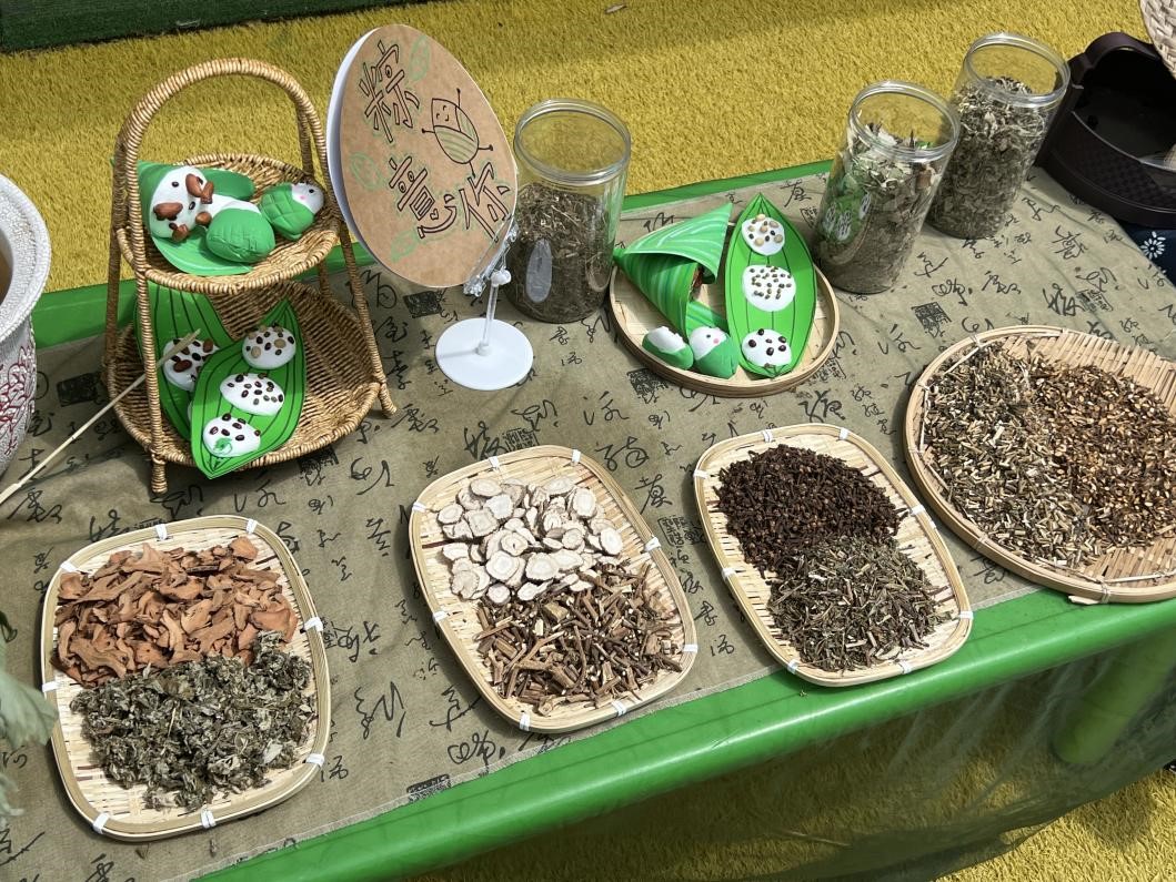 以端午节为引,艾草为纽带,引出中医药文化。以实物讲解的形式让孩子们认识薄荷、艾叶、桂枝、白芷、荷叶、藿香、佩兰等生活中常见的中草药。通过气味让孩子们分辨它们,并和小朋友们一起做驱蚊防虫、预防感冒的香囊,使孩子们对中医药产生了浓厚的兴趣。