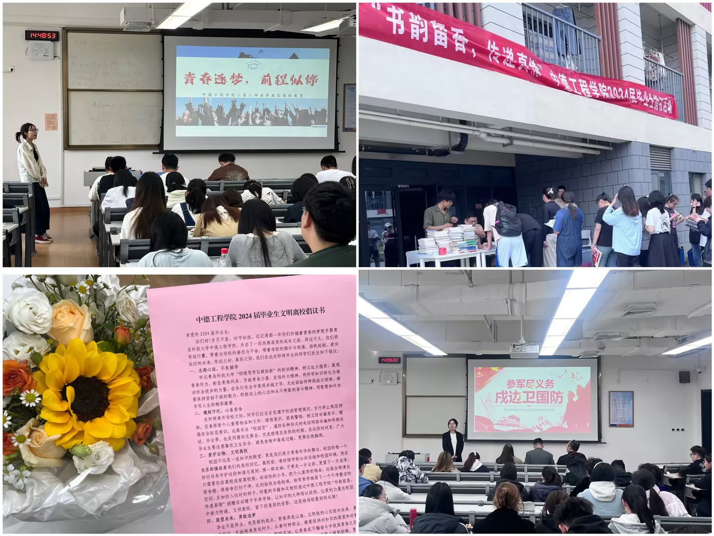 为切实做好2024届毕业生教育服务管理工作,营造文明有序、健康和谐的良好氛围,中德工程学院团委围绕“爱党爱国、爱校荣校”主题,组织开展“青春向党建新功,挺膺担当向未来”毕业生系列主题教育活动。