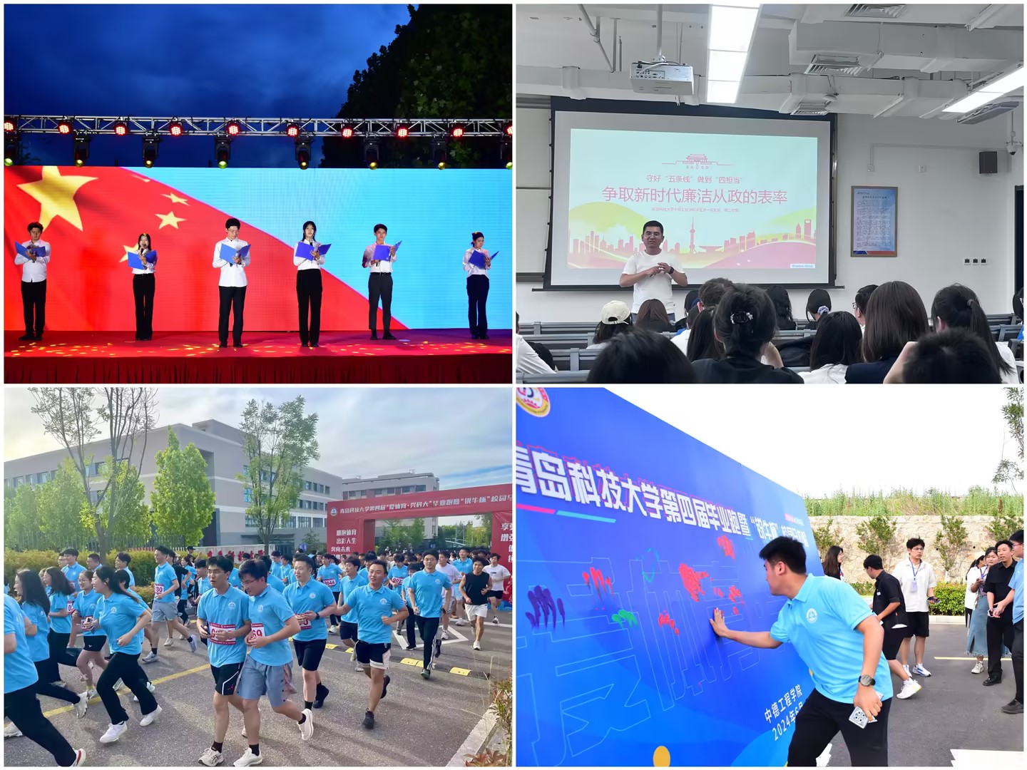 学院团委贯彻以文化人、以体育人的教育理念,通过校情校史教育,强化毕业生主人翁意识。通过打造校园文化“打卡”景观、赠送青科元素毕业生纪念品等方式,加深毕业生对母校的感情;开展毕业生座谈会、院领导走访宿舍等活动,与毕业生共话在青科学习生活的丰硕成果;围绕“拥抱体育、出彩人生”,组织毕业生环校毕业跑,用脚步再次丈量青科美丽校园,铭记美好时光。一系列举措,促使毕业生增进对母校的认同感、归属感和自豪感,引导毕业生以实际行动发扬“科大精神”、践行“橡胶品格”、贯彻“五有理念”,自觉传承“科大家风”、讲好“科大故事”。