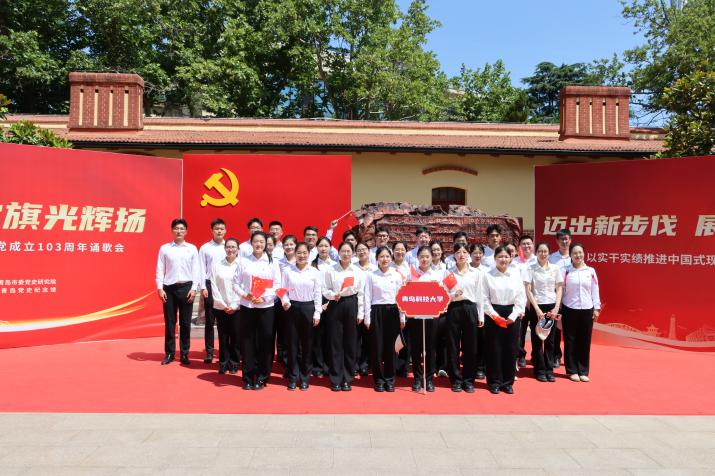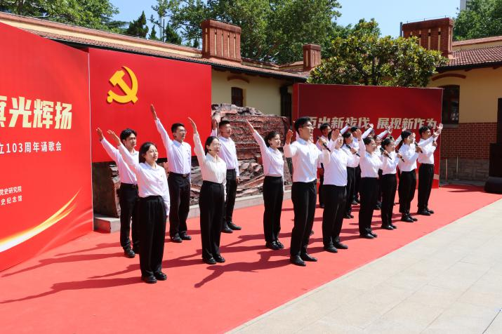 “七一”来临之际,为庆祝中国共产党成立103周年,重温党的光荣历史和光辉历程,6月28日,“高擎党旗光辉扬”庆祝中国共产党成立103周年诵歌会在青岛党史纪念馆举行。AC米兰中国官网马克思主义学院团总支青年代表赴青岛党史纪念馆进行“七一”展演,与岛城机关、企事业单位、街道社区、大中小学校等共建单位的300余名社会各界党员群众代表一同,欢聚在中共青岛地方支部旧址共庆党的生日。