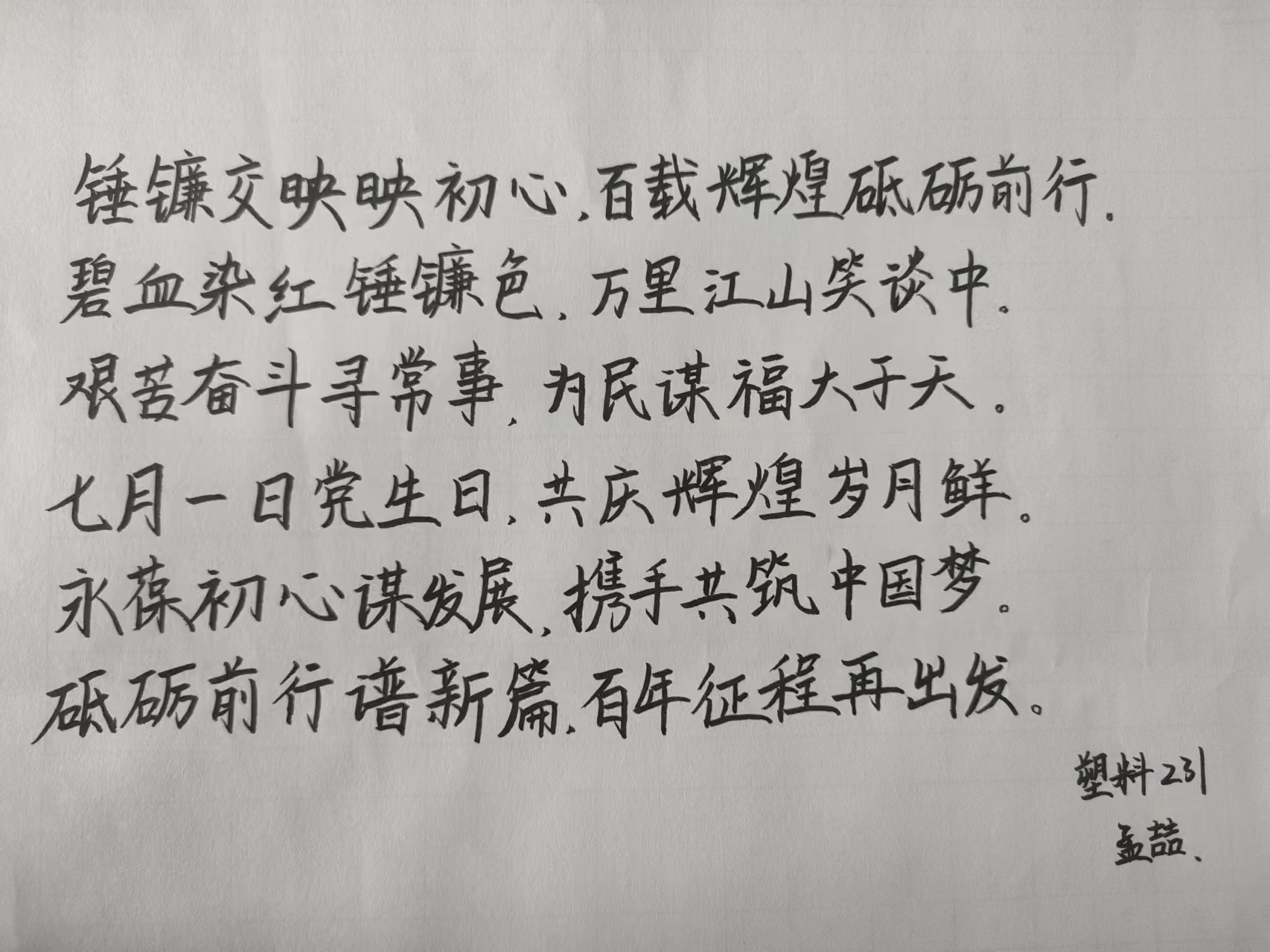 在中国共产党成立103周年来临之际,高分子学院团委号召全体同学,向国家、向中国共产党写下自己的三行情诗。用实际行动表达作为新时代广大青年的爱党爱国之情。