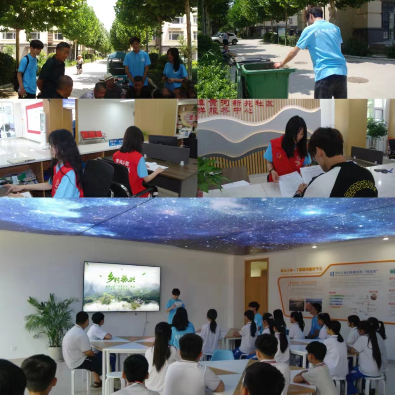 参观结束后,赴梁山县“齐聚水浒,共促发展”志愿服务队的团员青年前往小路口镇开展志愿服务活动,参与垃圾清扫工作,期间,他们还进一步了解了乡镇基础设施建设,并与当地居民开展深入访谈,关心居民的生活状况,倾听居民对于社区建设的建议和意见。在访谈中,团员青年也积极宣传环保理念,引导居民们养成垃圾分类的良好习惯,共同维护卫生环境。同时为进一步解居民所需,切实助力推进乡村振兴进程,团员青年前往黄河新苑社区服务中心志愿服务岗开展学习交流。