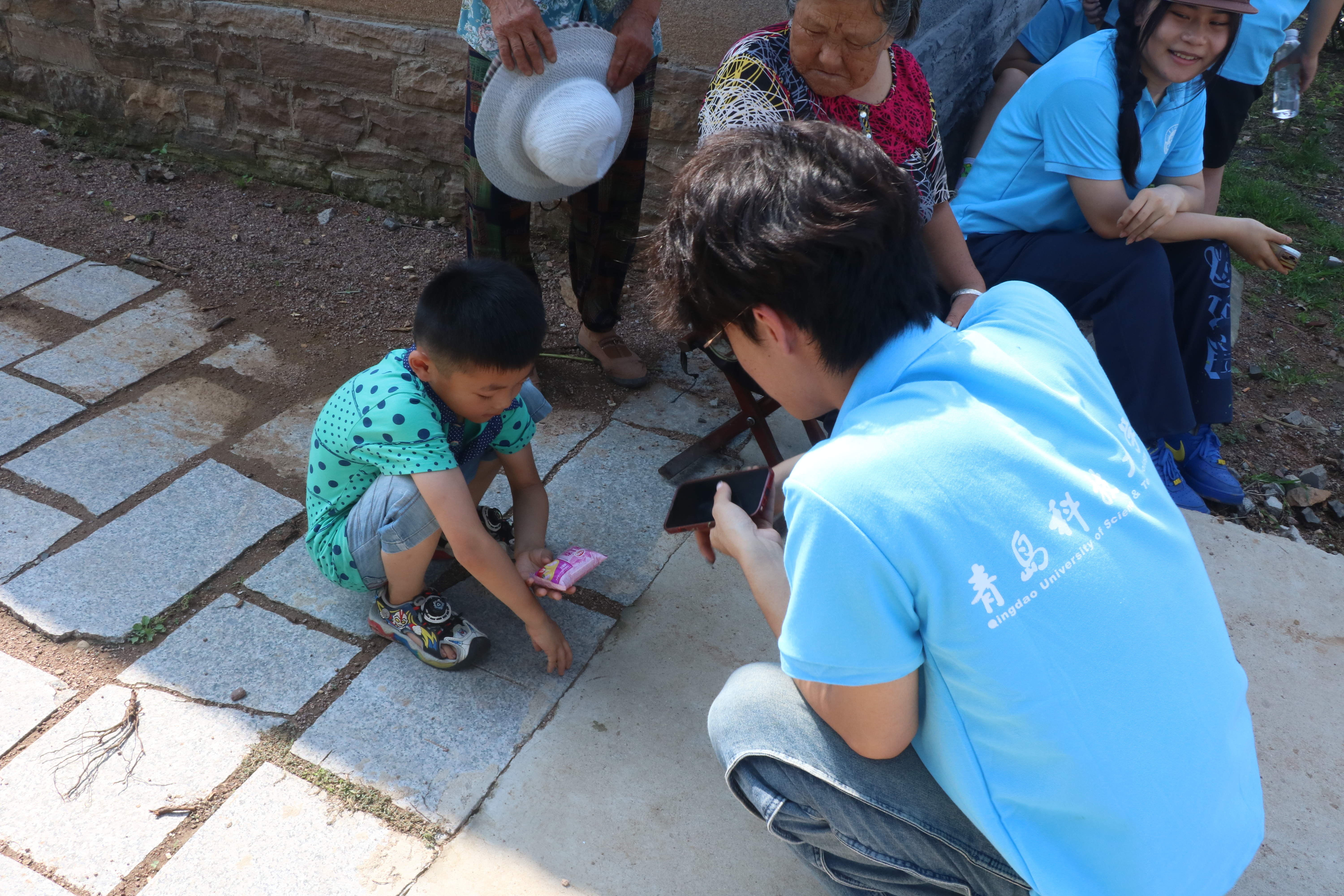 在绘画过程中,“小漫姐姐”们还热情的同村中老人和小朋友们交谈,了解当地风土人情,为静谧的小村庄带来了一抹青春气息。