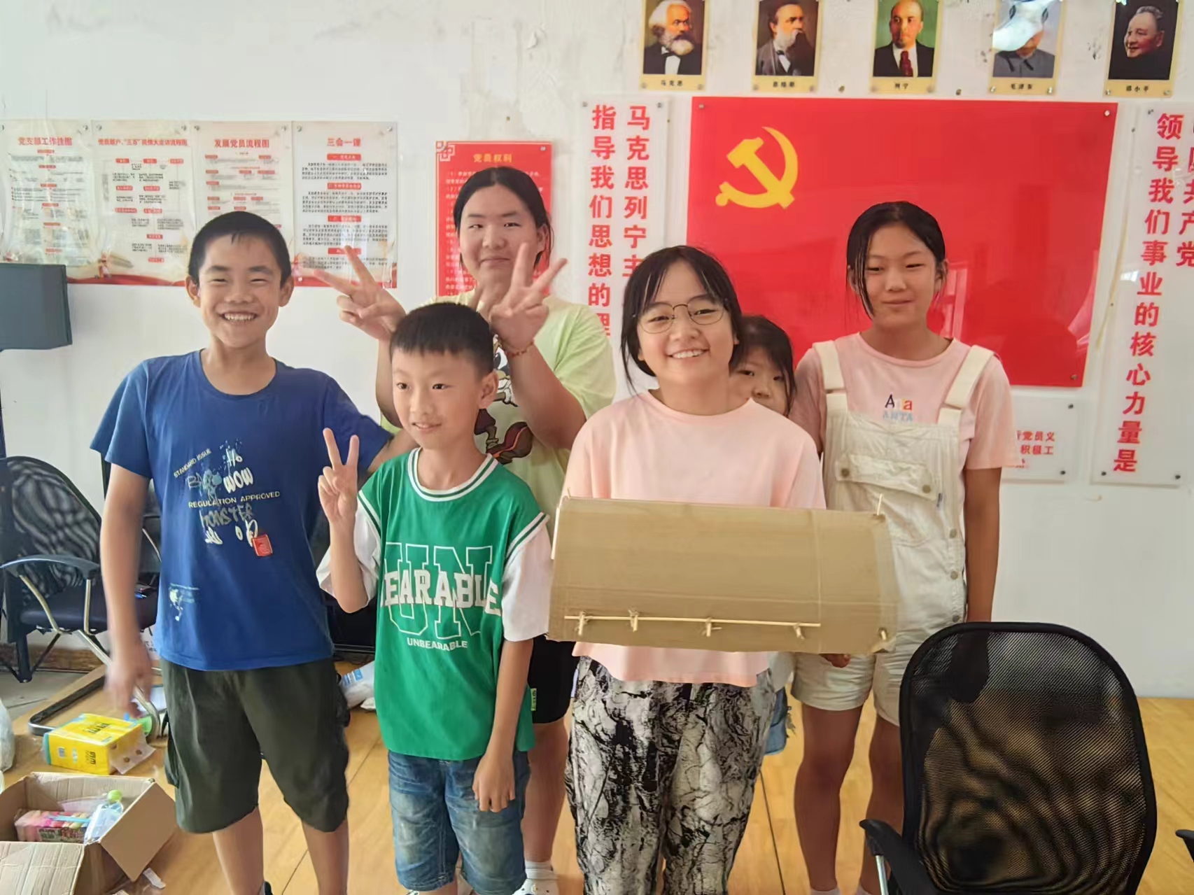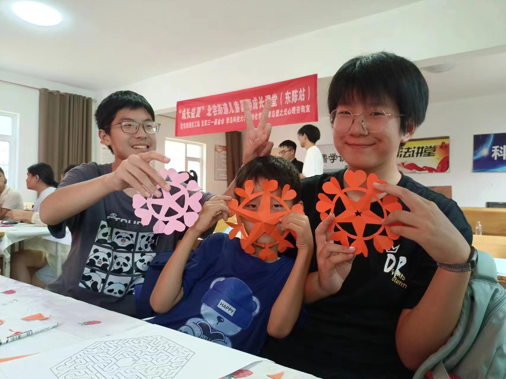 志愿者们与社工合作开设了“挖啦挖啦探客教育”探客夏令营科普系列活动——通过手工实践活动,普及科学知识,培养孩子们的动手能力,团队合作能力与创新思维。在此系列课堂第一阶段共开展三期,志愿者们设置了不同环节与要求,孩子们利用探客包里的纸壳、彩色冰棍棒、剪刀等手工道具,以小组的形式通过团队分工协作创造出独一无二的作品。此系列课程涉及生活的方方面面,融合了丰富的科普知识,涵盖多个领域,孩子们通过共同合作来亲手绘制图纸、制作模型等,不仅能够直观地理解抽象的科学概念,还能在实践中发现问题、解决问题,培养批判性思维和创新能力,活动过程中同样也培养了孩子们学会倾听他人意见、尊重他人成果,增强了团队协作意识,也为未来的社交生活打下坚实的基础。