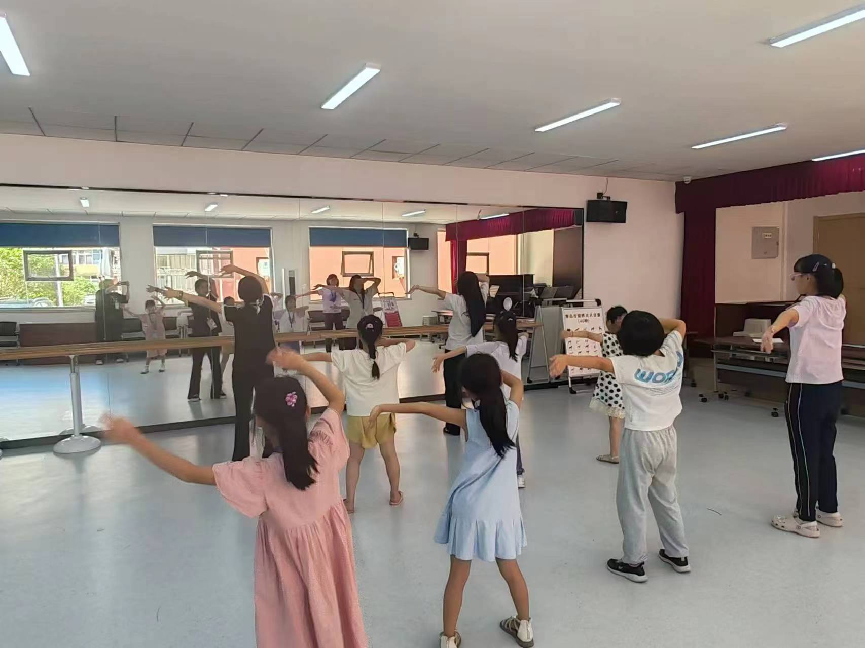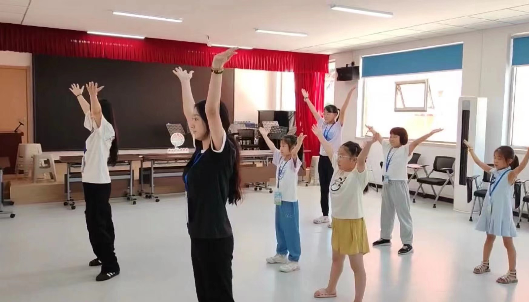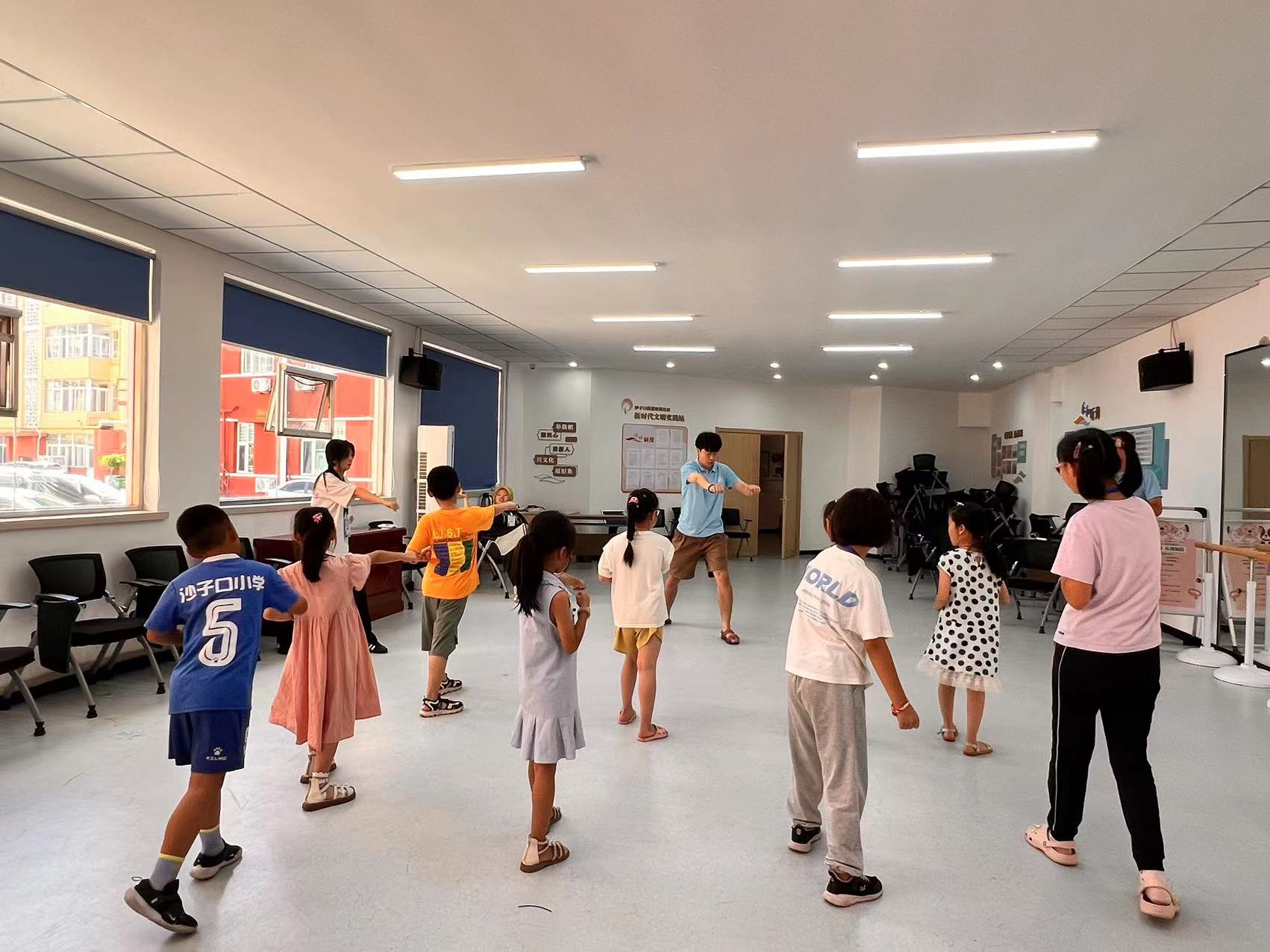 志愿者们还利用自身特长,化身为舞蹈老师,为孩子们编制了一套简单的运动舞蹈。现场气氛热烈,欢声笑语不断,不断反复练习,纠正动作,从“参差不齐”到“整齐划一”,志愿者们见证了孩子们的迅速成长。