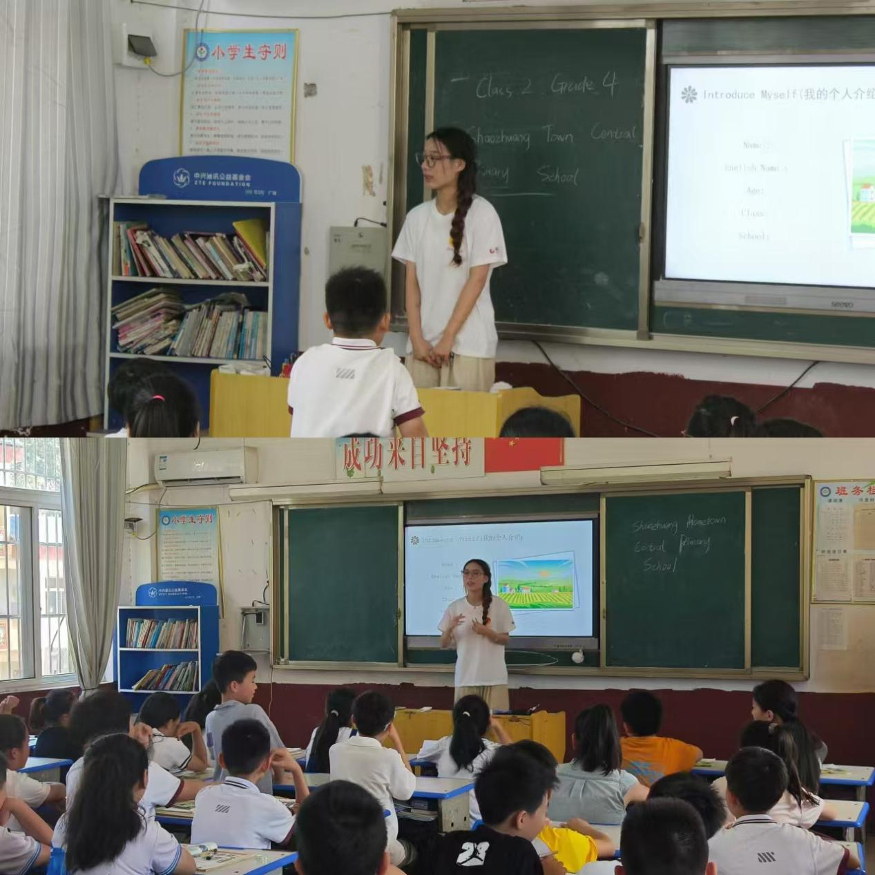 语言是交流的工具,在英语课的授课过程中,队员们通过游戏、歌曲和对话等形式,让孩子们做自我介绍,并介绍一些基础单词,增强了孩子的自信心,让孩子们感受到口语的乐趣,快乐的学习语言。