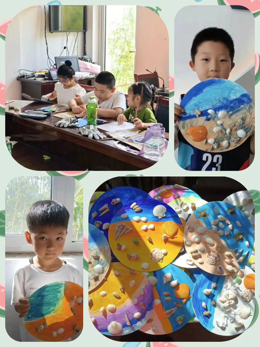 志愿者们首先关注的是孩子们的安全教育,通过一系列互动性强、贴近生活的安全教育课程,如火灾逃生演练、防溺水知识讲解、交通安全游戏等,让孩子们在轻松愉快的氛围中掌握了必要的安全自救技能,为他们的健康成长筑起了安全防线。紧接着,在贝壳纹理画课程中,志愿者们首先向孩子们展示了各种贝壳的形态和特点,讲解了贝壳的形成过程和海洋生态知识。随后,孩子们在志愿者的指导下,用彩绘和拼贴的方式,将贝壳变成了画作的一部分,创作出了富有海洋气息的艺术作品。