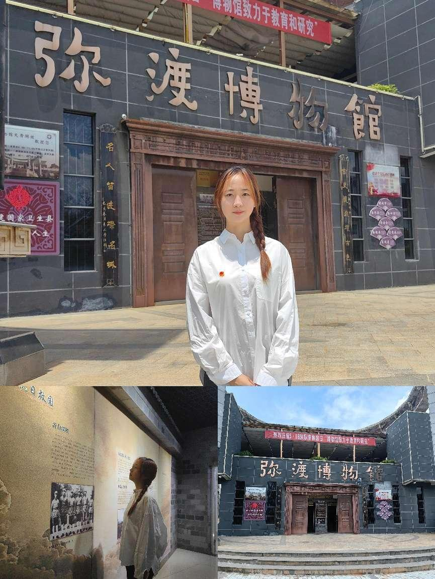 7月24日,团队成员走进云南省大理白族自治州弥渡县,了解当地红色历史,走进红色基地。1949年4月,滇西人民自卫团(边纵八支队全身)进驻弥渡,弥渡各起义部队在自卫团总部的领导下进行了整编,正式宣布成立滇西人民自卫团第三支队,三支队下辖三个大队,一个直属中队。滇西人民自卫团总部及下辖的一、三支队2000余人在陈家震、李鉴洲的领导下奔赴五台大寺,进行为期十多天的整训,建立革命根据地,整训以“古田会议决议——关于纠正党内错误思想”为建军指导思想,从当前形势、军队纪律、军事技能三个方面进行,使每个指战员懂得这支军队是党领导的人民军队,是为解放全中国而战的军队,它是执行党的政治任务的武装集团。通过整训使部队建立起了严格的纪律制度,学会了宣传、组织和武装群众,极大地提高了队伍的政治素质和作战能力。部队驻扎五台大寺期间,五台、先锋群众给予他们很大的帮助,为他们砍运柴火、打草鞋、送粮食等,不少有志青年还就此参了军。这里也是白族、彝族少数民族的居住地,在抗战过程中全民族齐心协力,积极响应共产党的号召。实践队员表示:通过走进历史遗址,革命先烈的英勇被深深铭记,青年们的世界观、人生观、价值观得到洗礼。