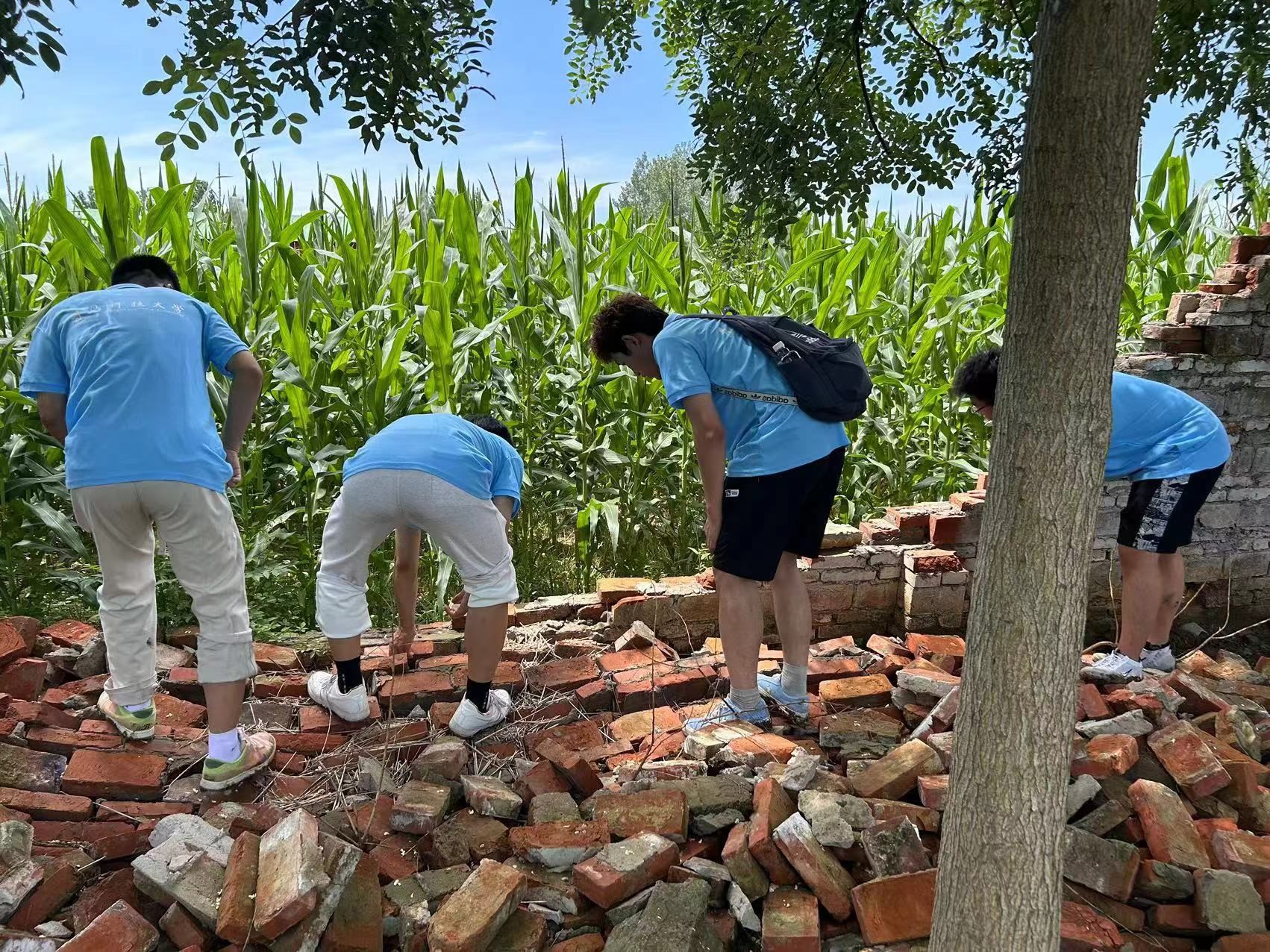 在西华县逍遥镇固西村,队员们了解到,该村近年来通过自愿结对的形式,实现了资源共享、优势互补、交流互动,走出了具有典型示范意义的乡村振兴道路。得知暴雨导致该村围墙倒塌,队员们不顾旅途劳累,主动挺膺参与到围墙清理、修复“战斗”中,队员们表示,在围墙清理、修复完周围村民们纷纷竖起大拇指的那一刻,被汗水湿透的衣衫仿佛也散发出了甜甜的味道。