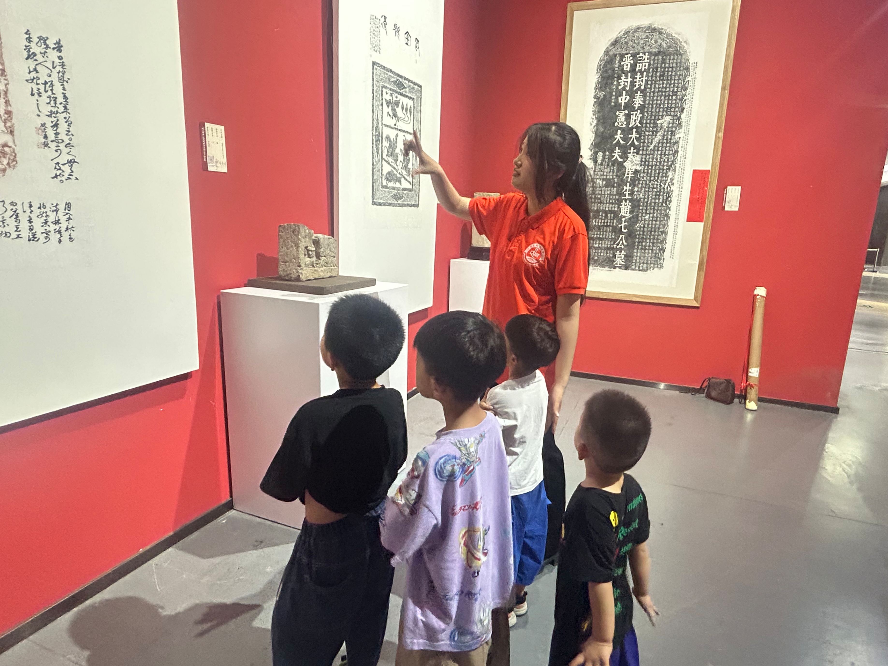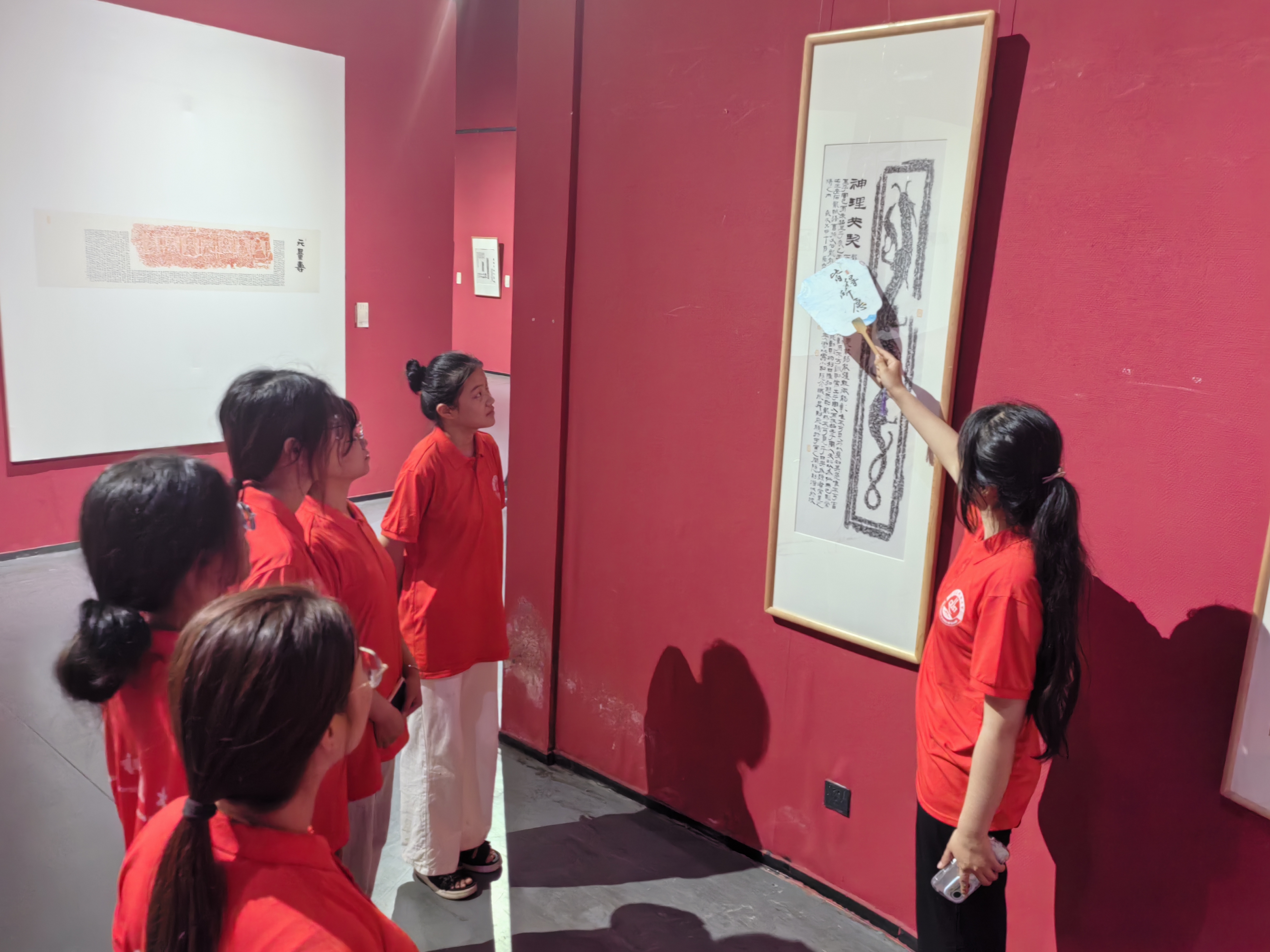 实践培训部分,在临沂市美术馆工作人员的带领下,宣讲团成员先后参观了国画书法展厅、王羲之博物馆等,讲解员为宣讲团详细介绍了临沂市美术馆馆藏作品的内容、精神和意义,通过参观学习,宣讲团成员对文化作品中所展现出的时代背景和文化内涵有了更深刻的理解,提升了审美能力和艺术素养。