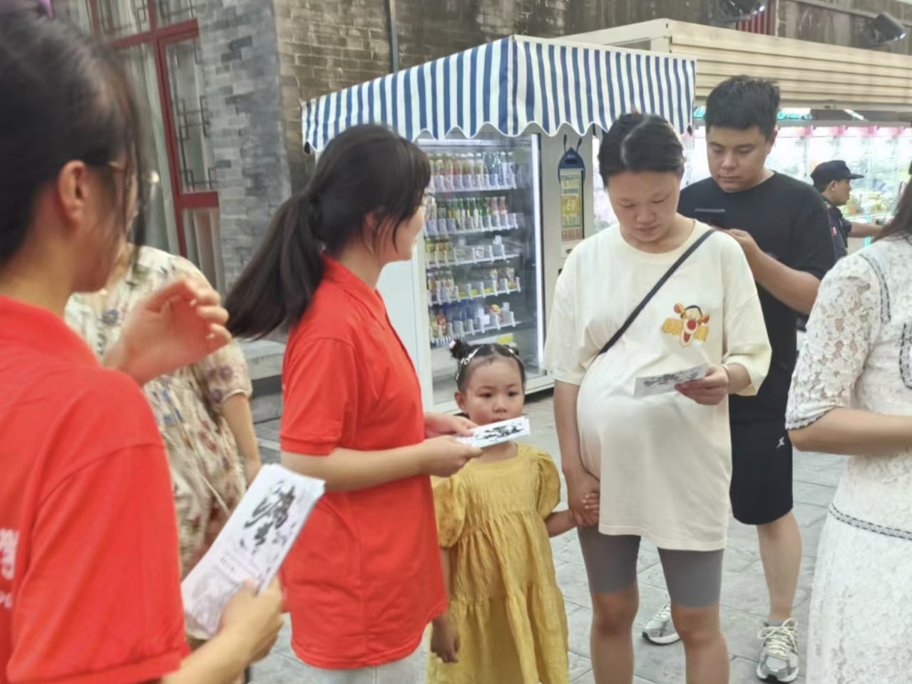 与此同时,其他宣讲团成员分发着宣传单,为游客们介绍宣讲团以及学习中国历代绘画大系的多种途径。他们不仅详细阐述了绘画大系的历史背景、艺术价值和社会意义,还积极推荐了一系列优质的线上课程和学习资源,帮助游客们轻松开启学习之旅。