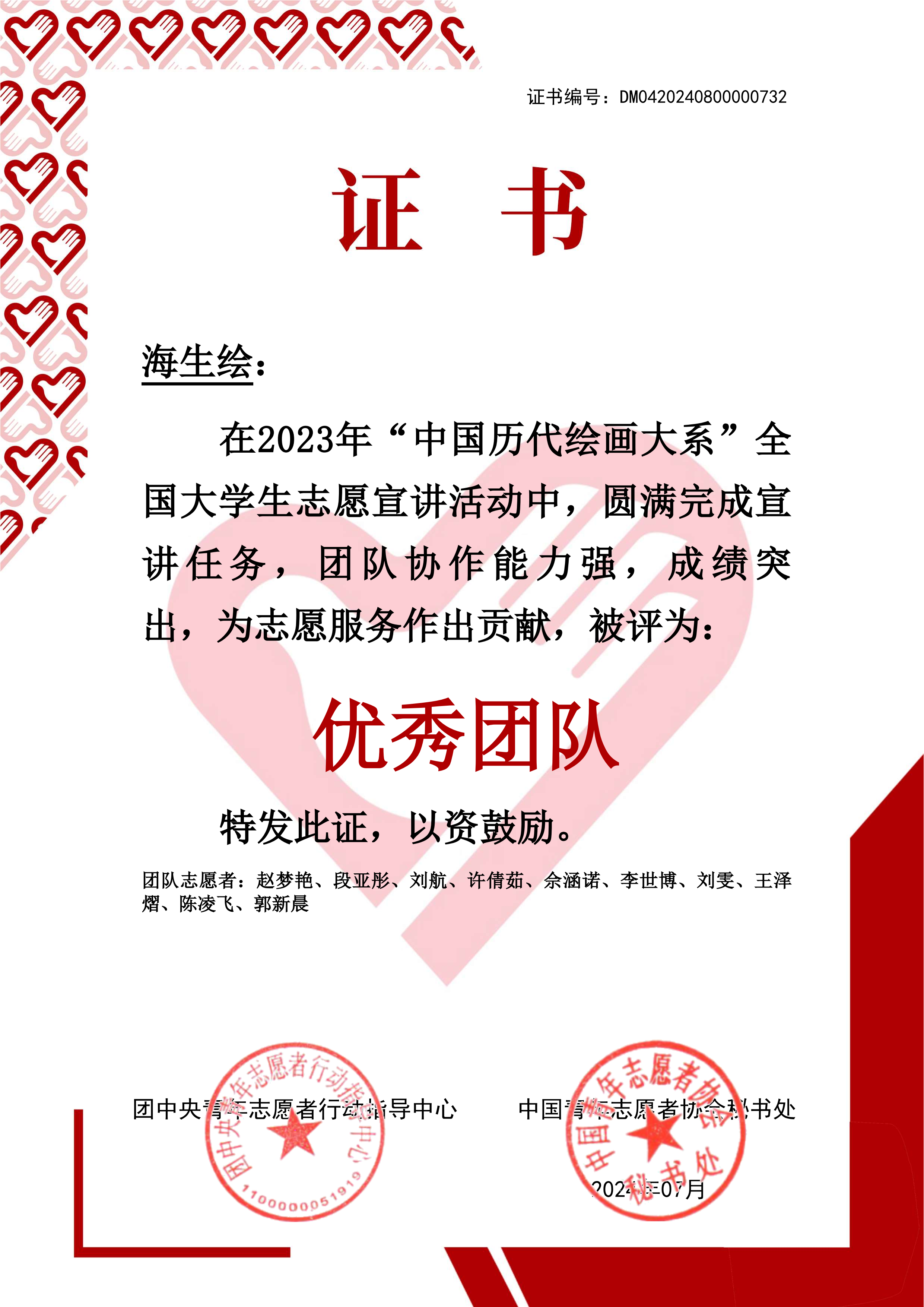 生物工程学院“海生绘”志愿宣讲团荣获2023年“中国历代绘画大系”全国百支优秀团队荣誉称号