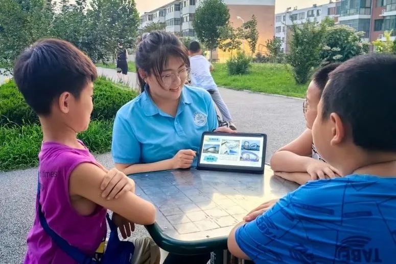 张梓桐和周笑萌前往威海市文登区清华园社区进行科普,团队还组织了“数学小侦探”环节,让小朋友们解答与莫比乌斯环相关的趣味问题,培养他们的逻辑思维能力和团队合作意识。
