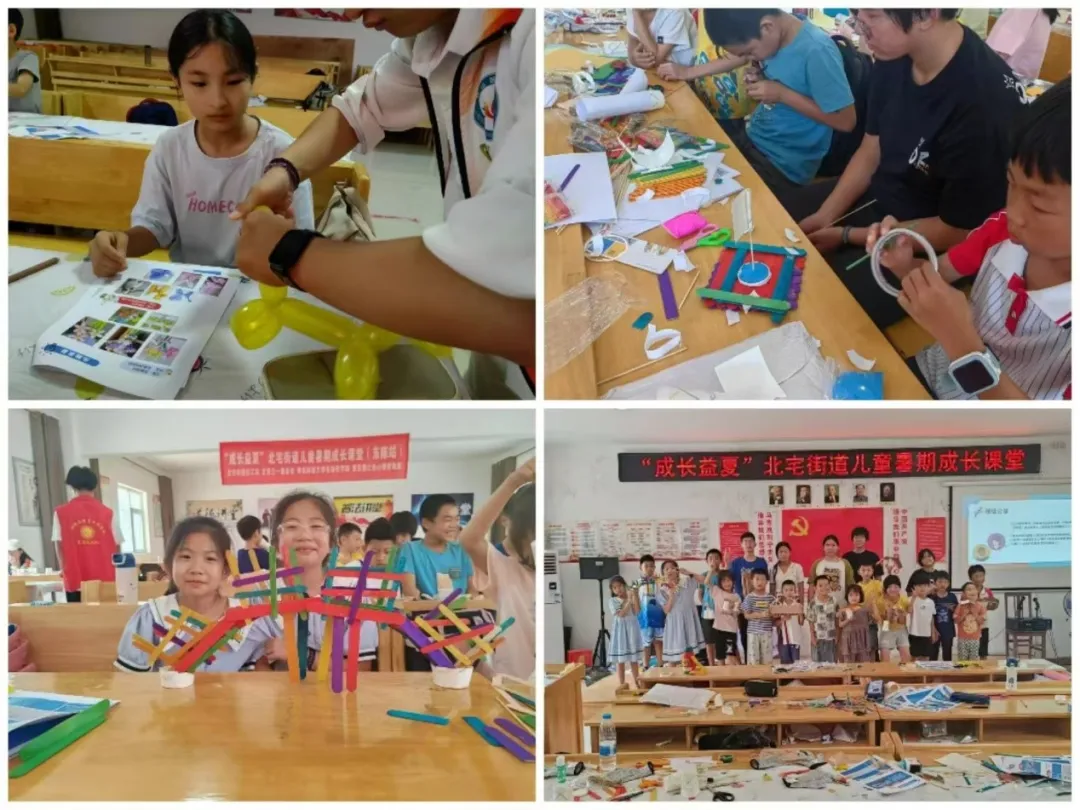 志愿者们还组织了趣味物理实验小课堂。与孩子们共同开启了梦幻的科学之旅,在悬空桥实验中志愿者讲解了增加领域面积法则、构造强度理论等原理,制作了悬空桥,三根雪糕棍支撑起了重物,孩子们在喜悦与实践学到了知识;在虹吸现象实验中,志愿者在同学们看到神奇的现象产生的发问后耐心讲解,使得孩子们加深了对于大气压强的了解;在A4纸承重实验中,对折弯曲的卡纸支撑起了一瓶水,孩子们在一声声惊叹中对力学和压强的基本概念有了初步认识。一个个的实验现象不仅能够使孩子们直观地理解抽象的科学概念,更让科学的种子在他们心中生根发芽。