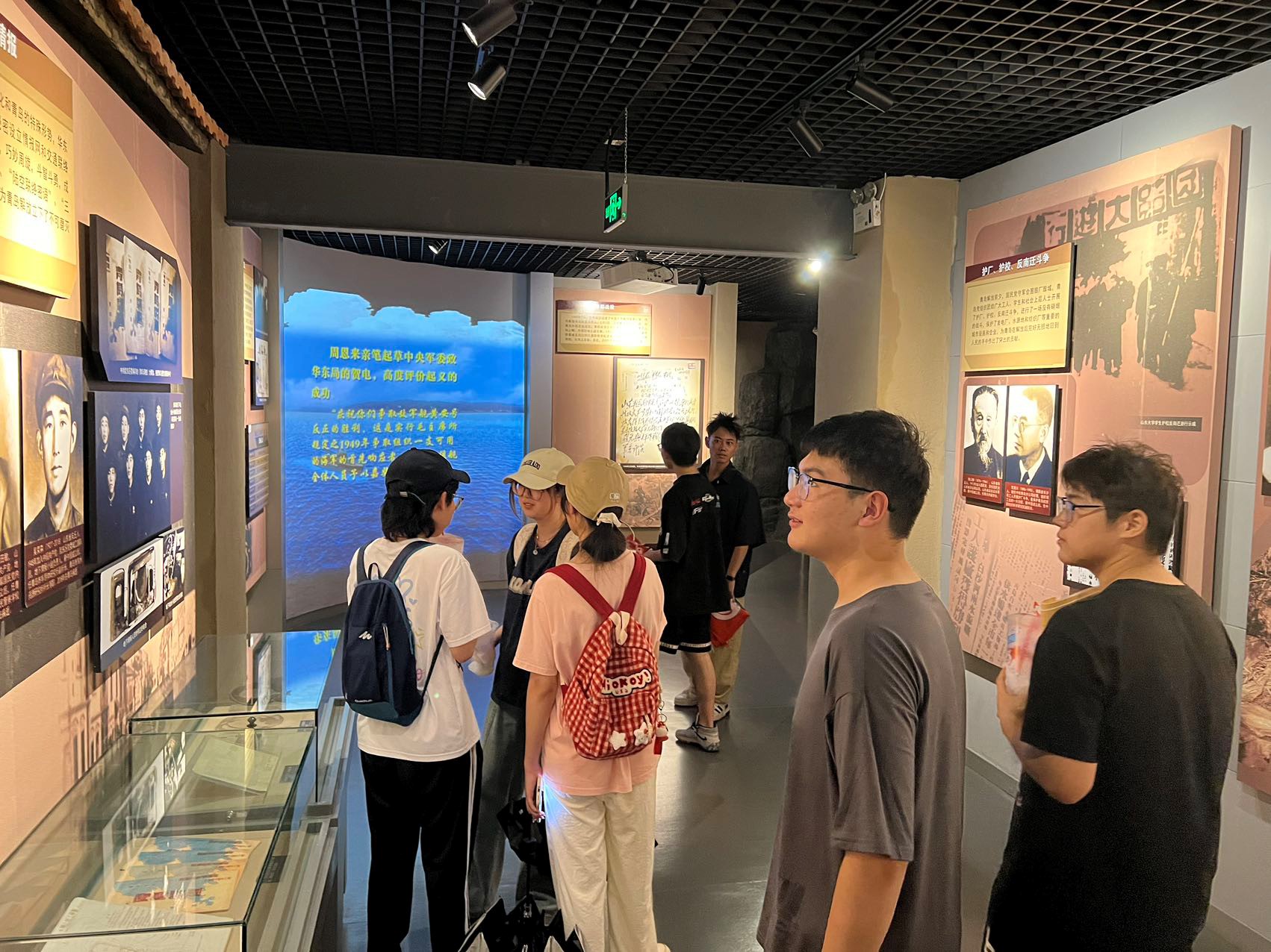 实践团进入纪念馆,庄严肃穆的氛围便立刻将队员们引领至那段波澜壮阔的历史长河中。展览沿着时间的脉络缓缓展开,逐一呈现青岛党组织自诞生以来的奋斗历程。从革命初期星星之火的微弱光芒,到抗日战争烽火连天的壮烈场景,再到解放战争胜利的辉煌时刻,每一幅珍贵的历史图片、每一件承载记忆的实物,都在无声地诉说着革命先辈们的英勇事迹和坚定不移的信念。队员们的心灵受到了强烈的震撼,对爱国主义的理解更加深刻,对红色文化的传承意识也更加坚定。