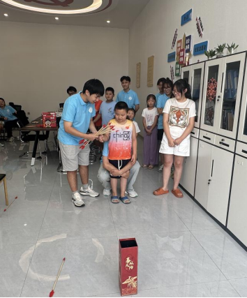 为拉近与小朋友们之间的距离,团队成员们组织小朋友们开展了“成语接龙”、“投壶”、“萝卜蹲”三个游戏,激发了小朋友们的兴趣,消减了小朋友们的紧张情绪。