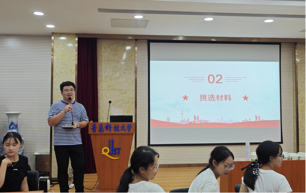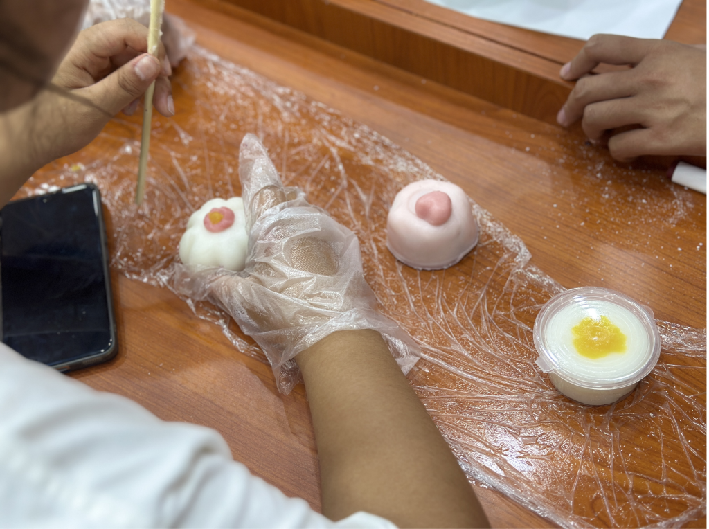 郝昱猛为新生们讲解了有关中秋节的文化习俗并简单介绍了月饼的起源、种类、特点和制作方法,随后新生们全神贯注,有条不紊地进行分工合作,揉面,称重,压皮,包馅,放进带花纹的模具中按压成型,最后,月饼新鲜出炉,香气扑鼻。