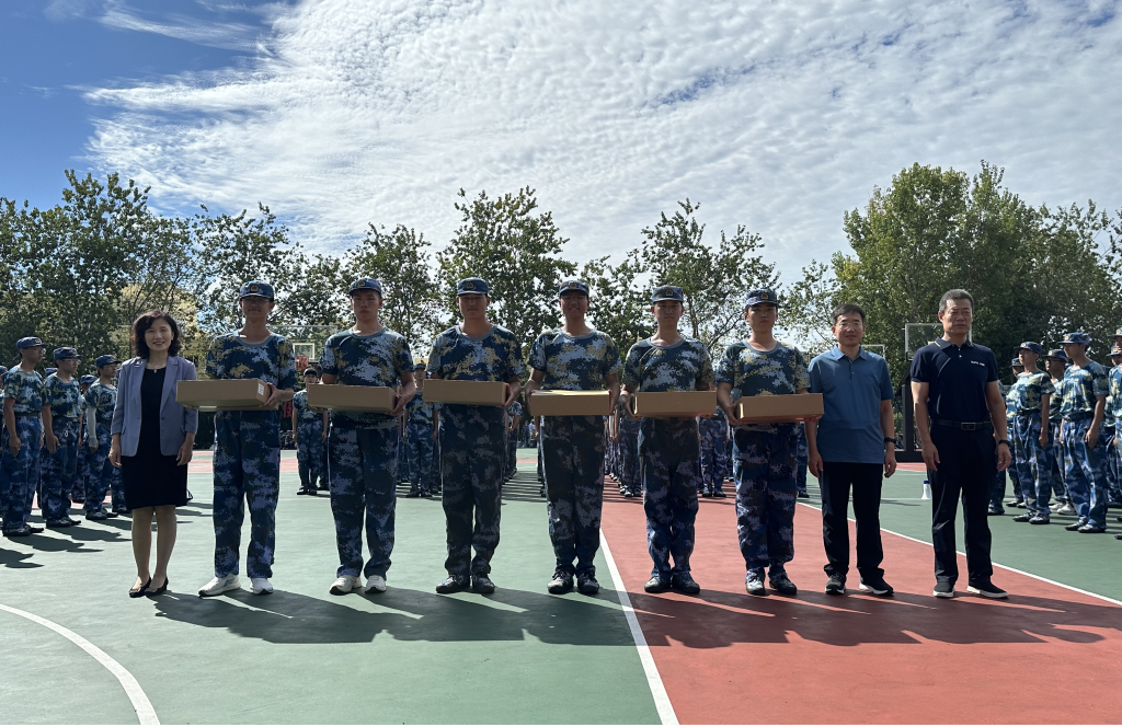 王景景代表学院向承训教官表示诚挚的感谢,向全体参训新生表示慰问并向新生们致以中秋节问候。在详细了解新生参训期间的纪律、思想、身体和拉练情况的同时,高度肯定了新生们在训练场上展现出的积极昂扬的士气和坚持不懈的努力。鼓励新生们珍惜军训的时光,在军训中磨炼意志、锤炼精神、增强纪律品质、培养团队观念。