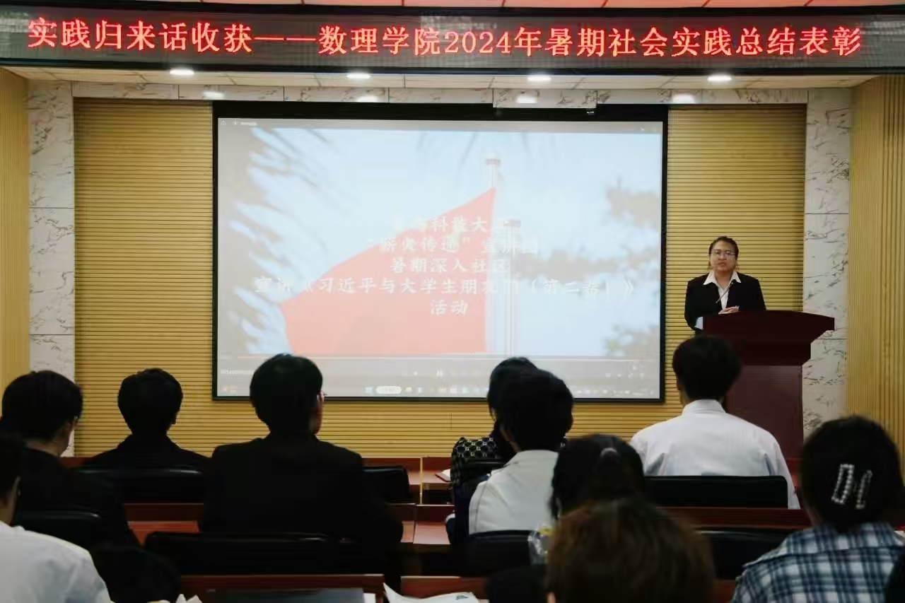 为落实校团委关于开展“实践归来话收获”总结活动的通知要求,9月24日,数理学院团委组织召开2024年暑假社会实践总结表彰会。学院党委副书记李雯雯、社会实践指导教师刘敏及各年级社会实践青年代表参加会议。会议对32名获得社会实践优秀学生荣誉称号的青年学子进行了表彰并授予“实践π”的称号。会上,“青苗助红”实践队队长孙焕溪以“促进乡村振兴”为主题,从家乡特色、服务经历、个人感悟等方面做了汇报发言。“薪火传递”宣讲团的队长张梓桐全方位展示了个人在暑假进社区领学《习近平与大学生朋友们》的所思所悟。“雷锋式”团支部的成员李志豪讲述了“老物件寻访计划”的基本情况,分享自己爱老敬老助老的心路历程。