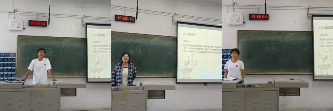 在“十五的月亮十六圆”结束后,主持人又带领大家进行了“击鼓传花”。活动开始,主持人面向黑板背对大家,用手机播放音乐,“击鼓传花”游戏正式拉开帷幕,“花”在同学们的手中以“S”形快速传递,音乐停止后,拿到“花”的同学有的选择施展才艺——唱歌、讲笑话,有的选择分享交友经验或与朋友之间难忘的小故事。在这个过程中,同学们既学会了勇敢表达自己,也在欣赏他人的过程中收获了欢乐,学到了交友技巧,也增进了彼此之间的情感交流。