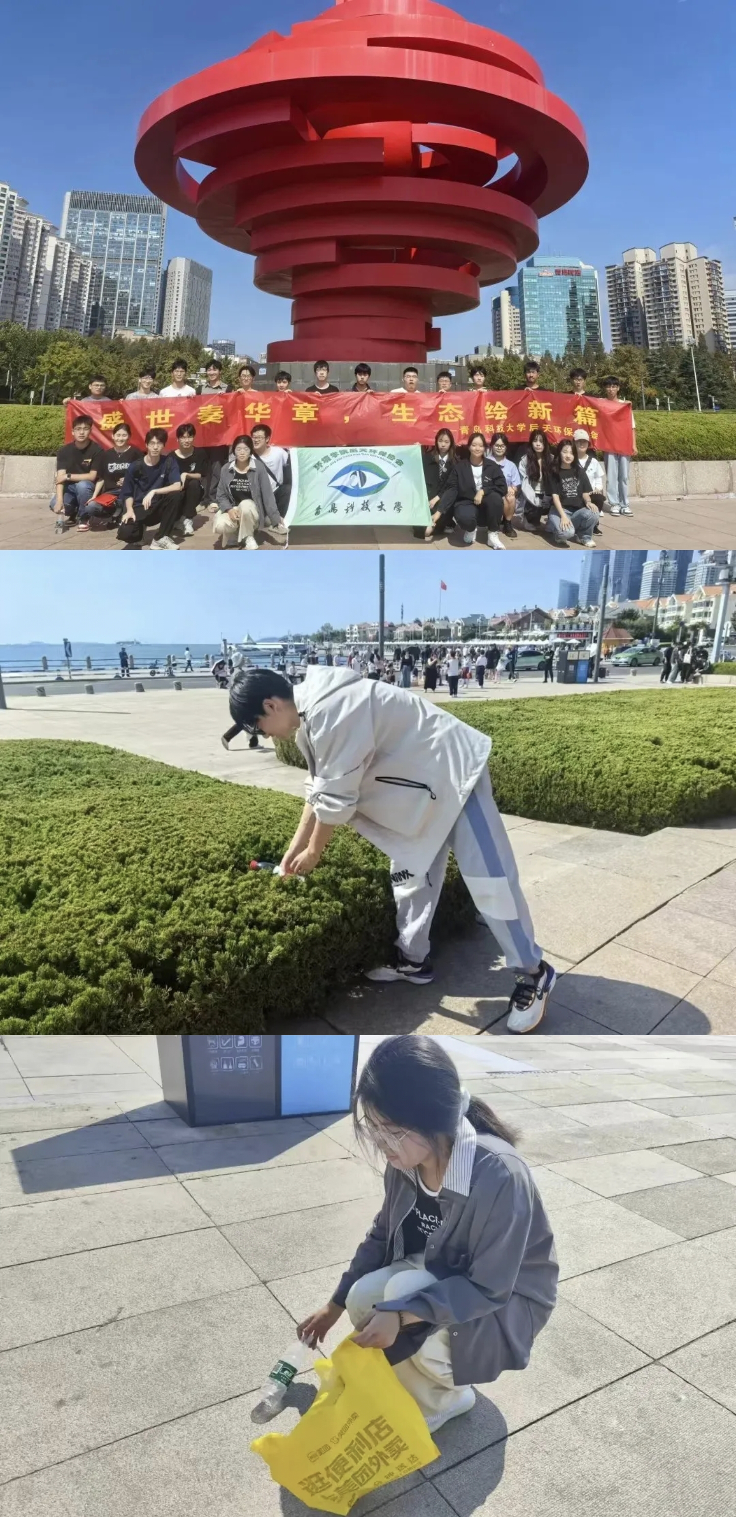 9月28日上午,后天环保协会在五四广场开展以“盛世奏华章,生态绘新篇”为主题的国庆节环保活动,志愿者们手持垃圾袋和清理工具,对五四广场上的白色塑料袋、纸屑、果皮等垃圾进行集中清理。同学们分工协作、相互配合,践行了不怕脏、不怕累的奉献精神。本次活动提高了同学们的环保意识,用实际行动传递环保理念,为建设美丽中国贡献力量。