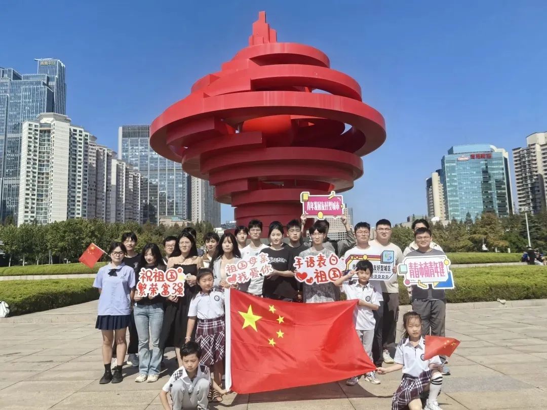 9月28日,环境231团支部在五四广场开展以“盛世华诞谱新篇,同心共筑中国梦”为主题的团日活动,团支部的同学们合唱歌曲《歌唱祖国》,共同祝愿伟大祖国繁荣昌盛,激昂的歌声在五四广场上空回荡。在五四广场,团支部同学们还遇到了同样在举办“学手语,用手语感谢中国”活动的青岛南京路小学的师生们,两个团支部进行了友好交流并合影留念。人异心同,但爱国之情却将同学们紧紧交织在一起,共同为祖国母亲庆生。